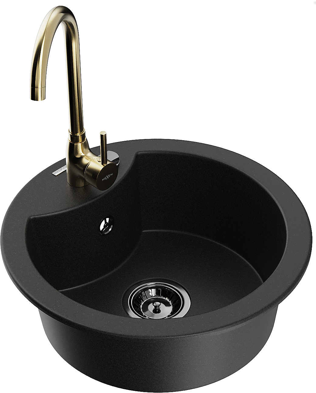 Mexen Diego гранитна мивка с една камера с кухненски смесител Telma, черен - 6512-77-670200-50-B