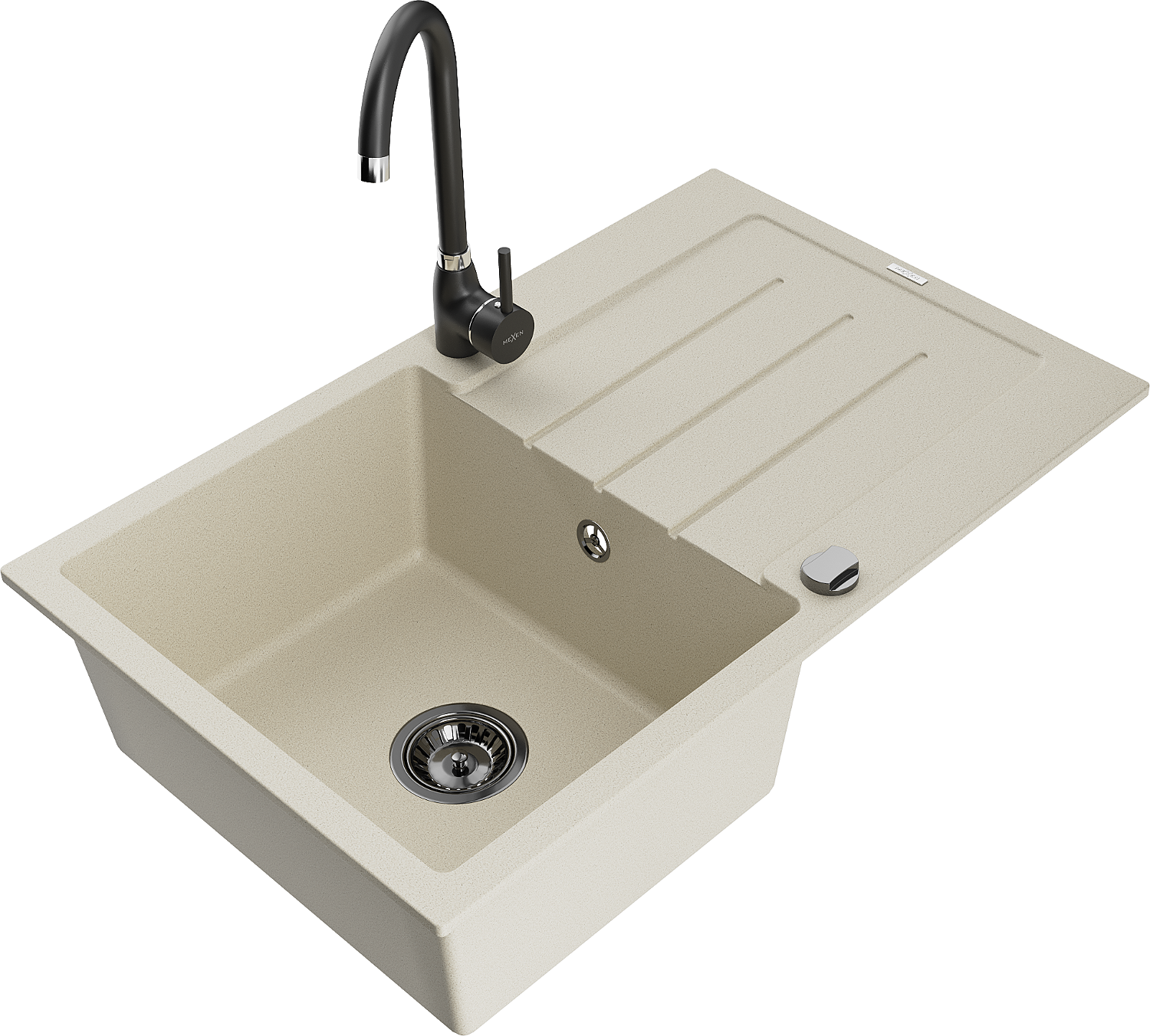 Mexen Bruno гранитна мивка с 1 камера със сушилник и кухненска батерия Telma, бежова - 6513-69-670200-70