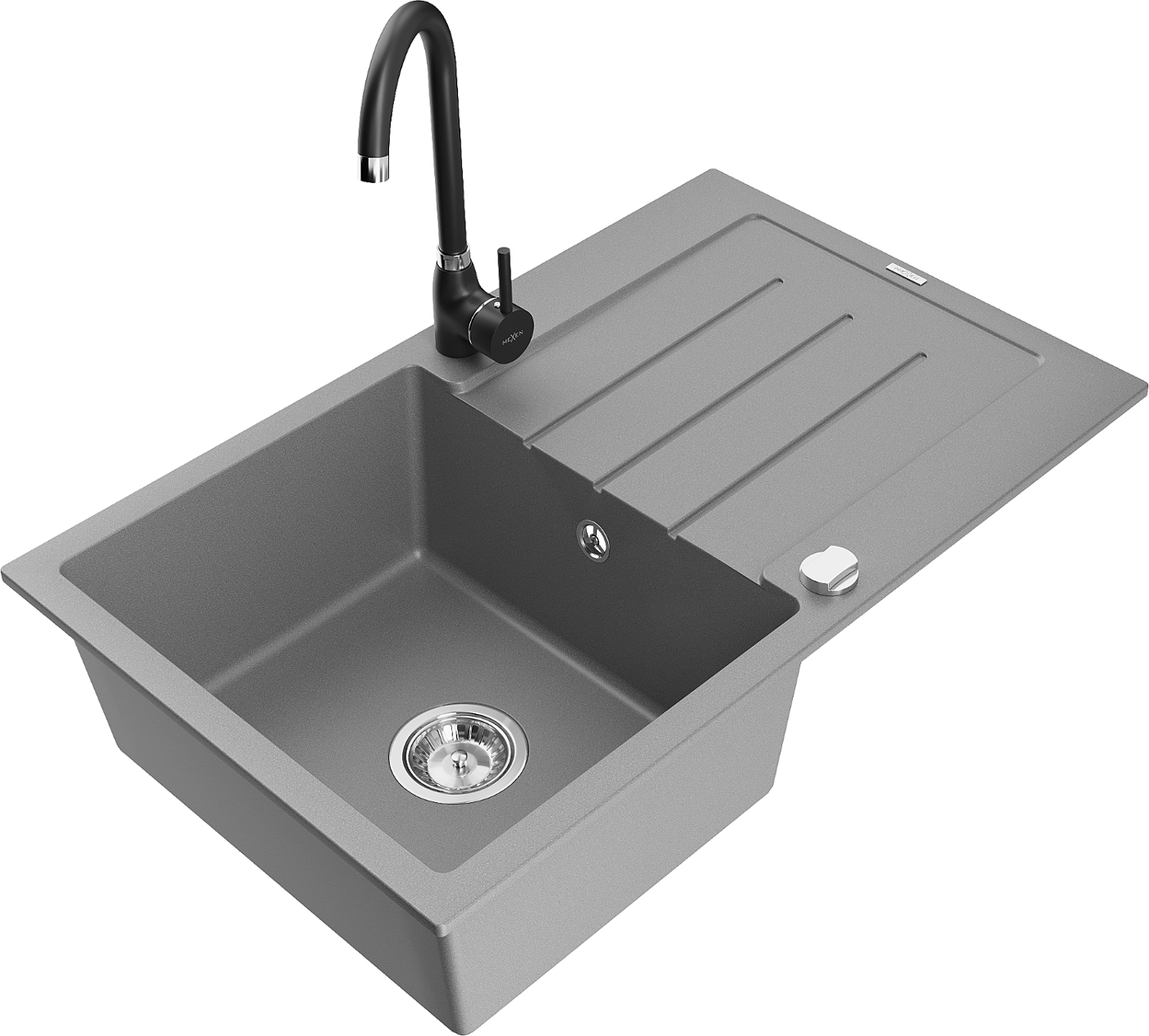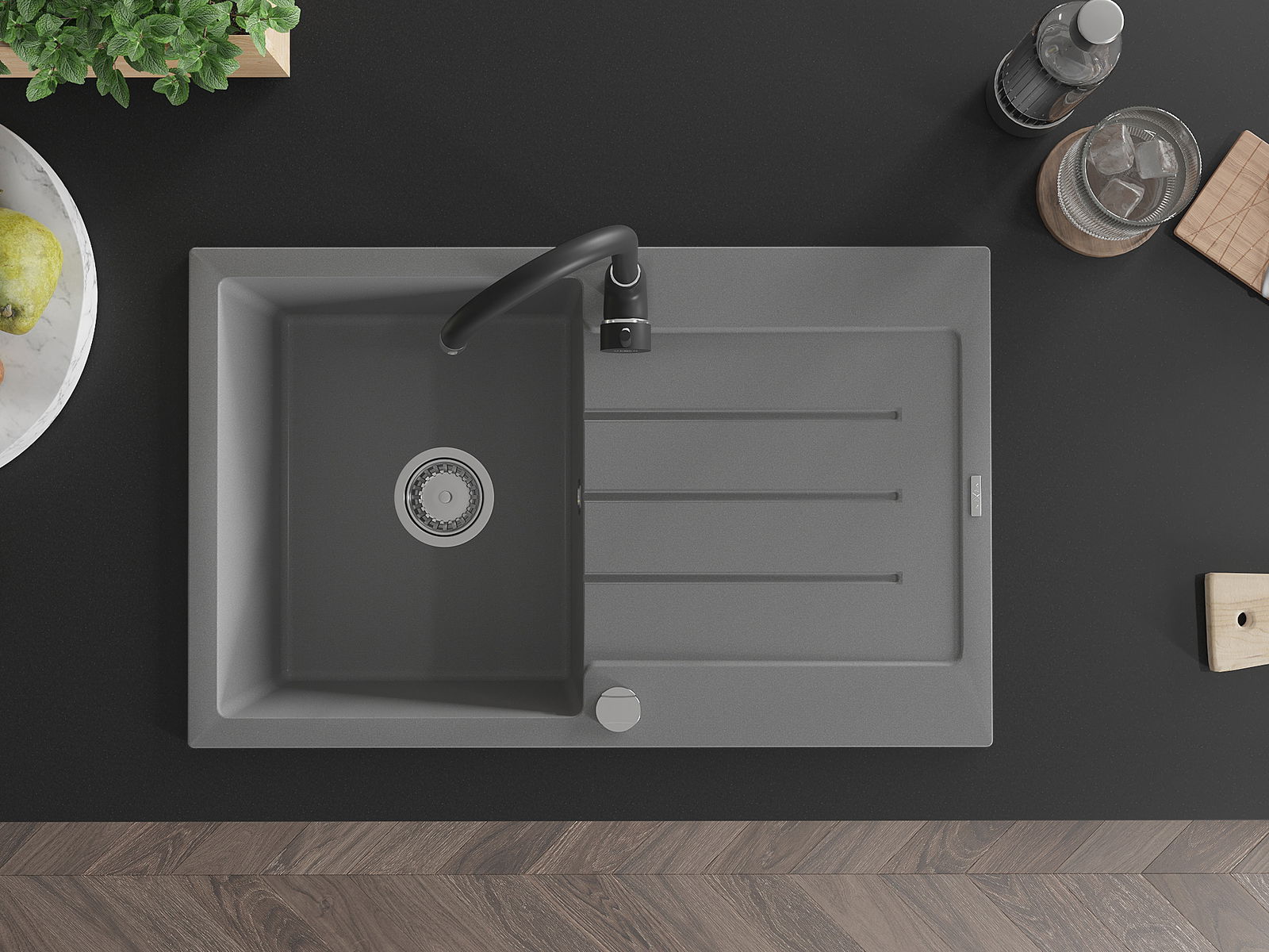 Mexen Bruno гранитна мивка с 1 отделение с отцедник и кухненски смесител Telma, сив - 6513-71-670200-70