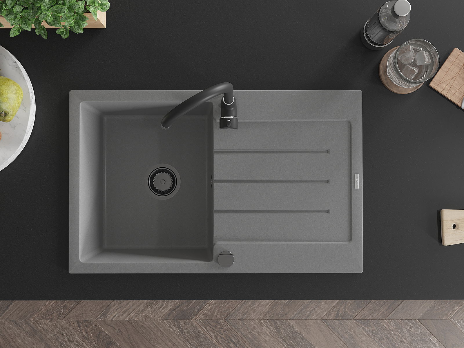 Мивката е направена от висококачествен гранит. Това е елегантно и най -вече практично допълнение към всяка кухня, независимо от нейния стил. Висококачествената и гранитна издръжливост осигуряват много години употреба.
