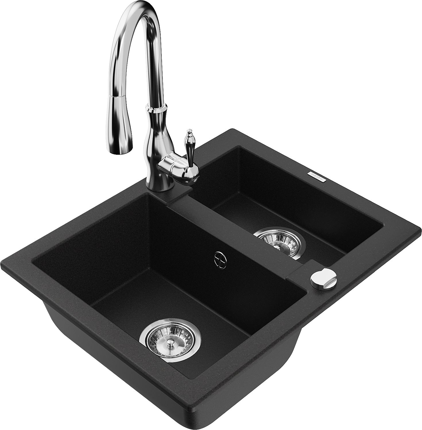 Mexen Carlos гранитна мивка с 1,5 камери с кухненски смесител Savita, черен - 6518-77-672601-00