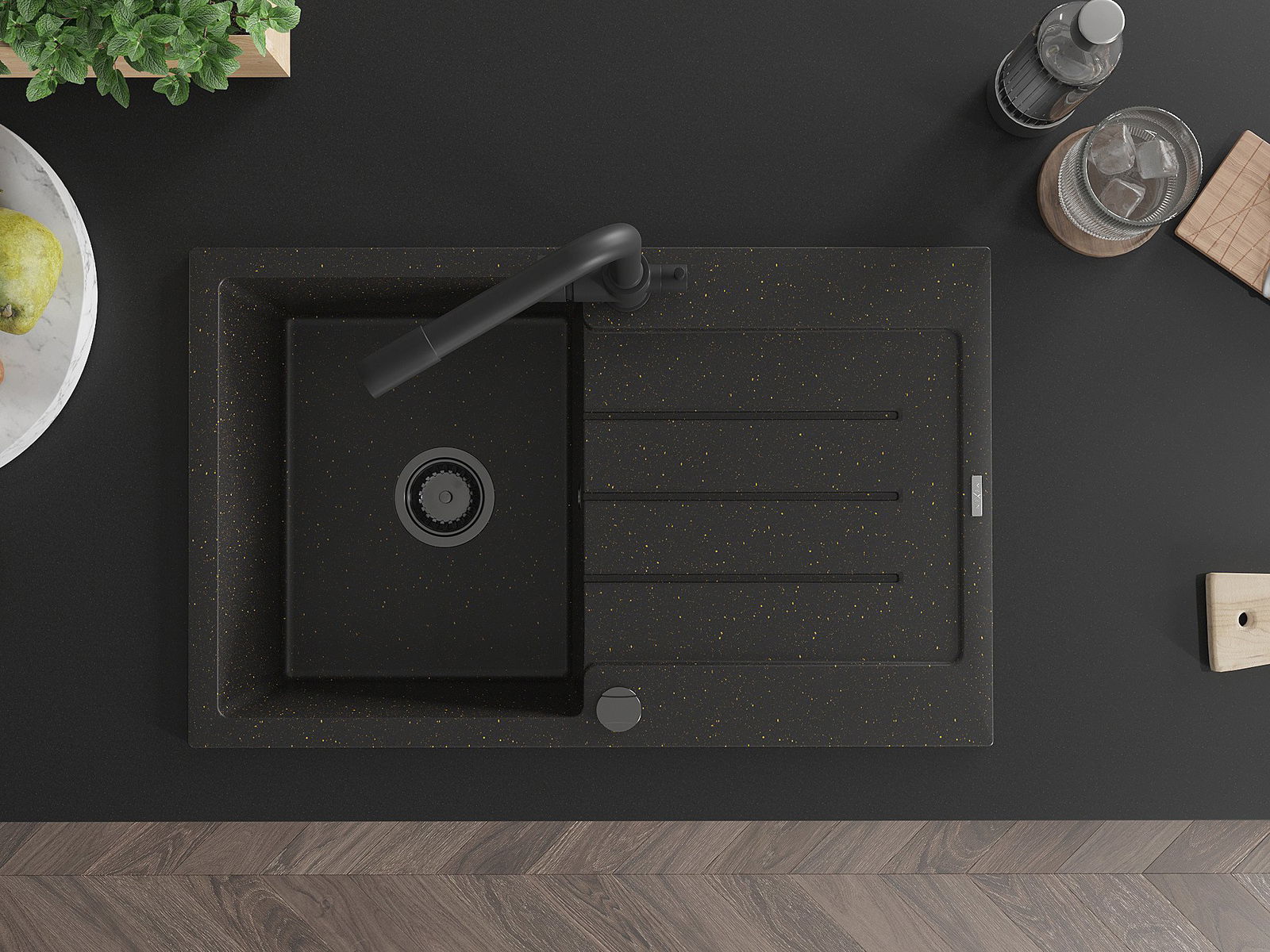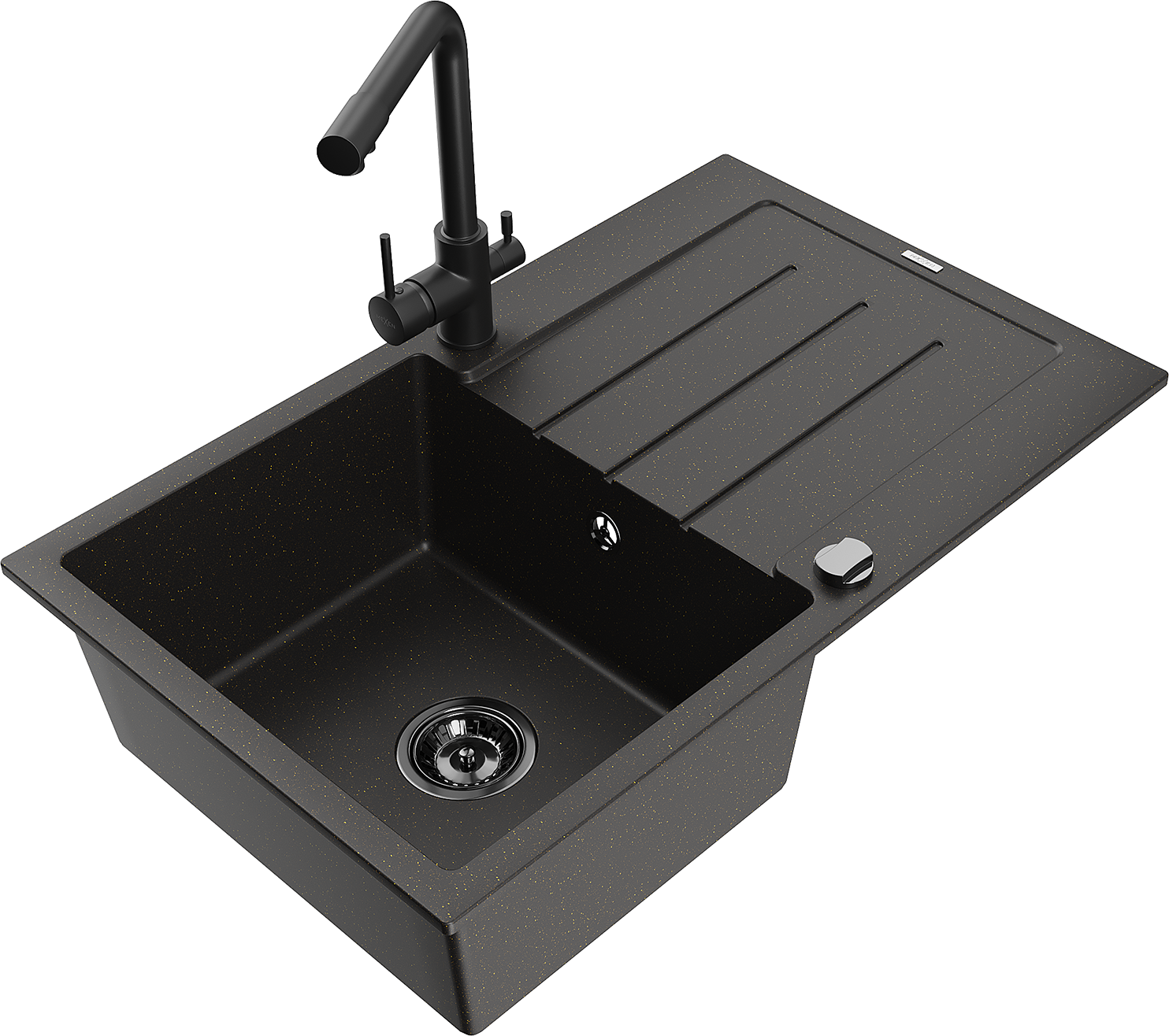 Mexen Bruno гранитна мивка с 1 гнездо, с дренаж и кухненски смесител Duero,