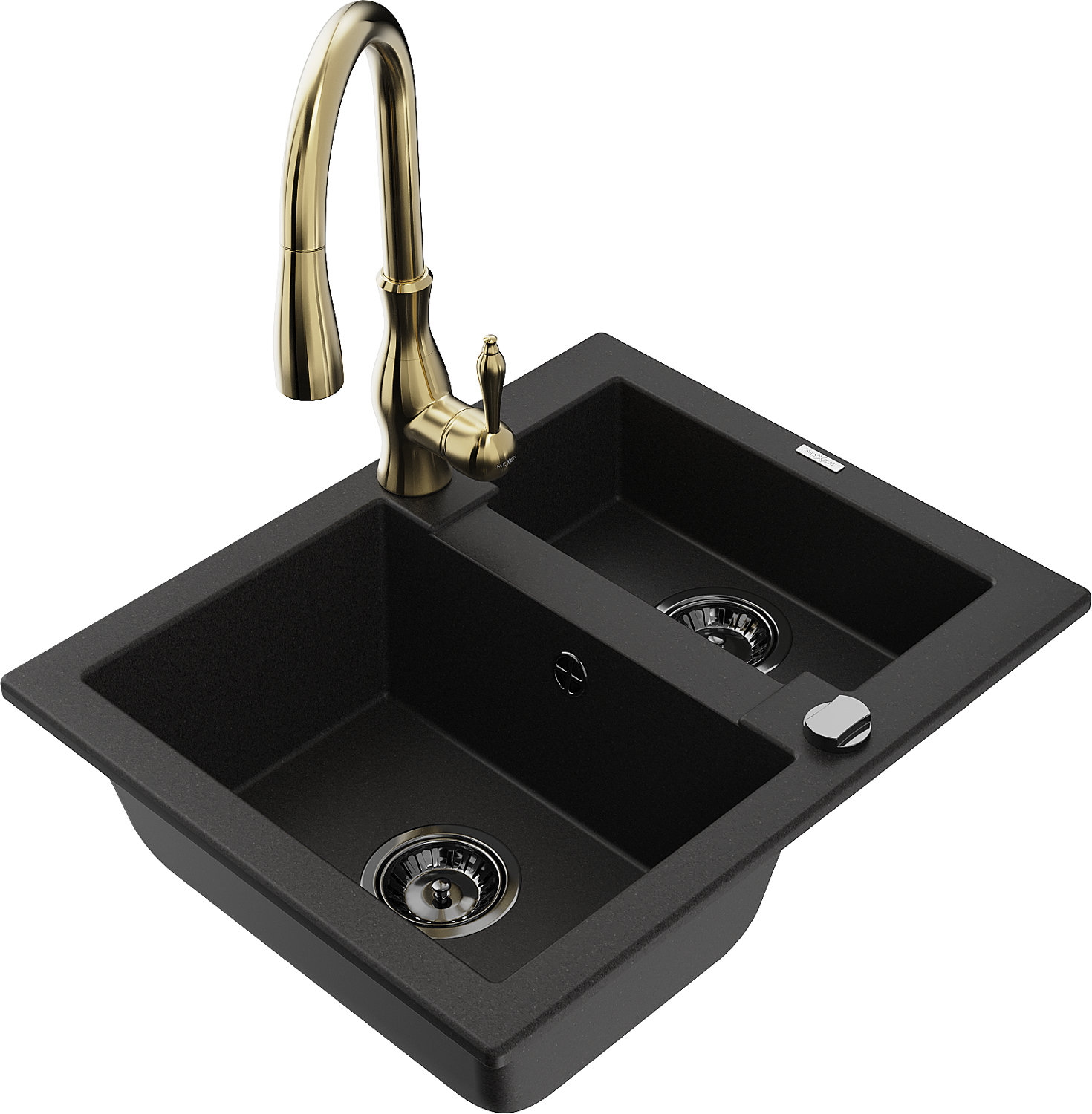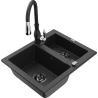 Mexen Carlos гранитна мивка 1,5-коморна с кухненски смесител Savita, черен - 6518-77-672601-50-B