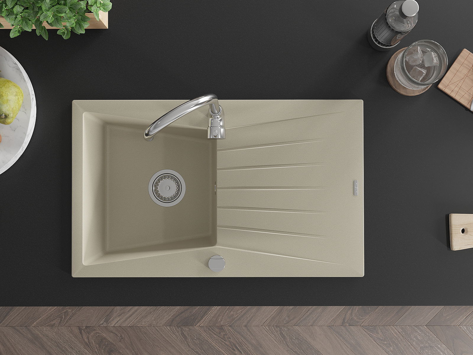 Мивката е направена от висококачествен гранит. Това е елегантно и най -вече практично допълнение към всяка кухня, независимо от нейния стил. Висококачествената и гранитна издръжливост осигуряват много години употреба.