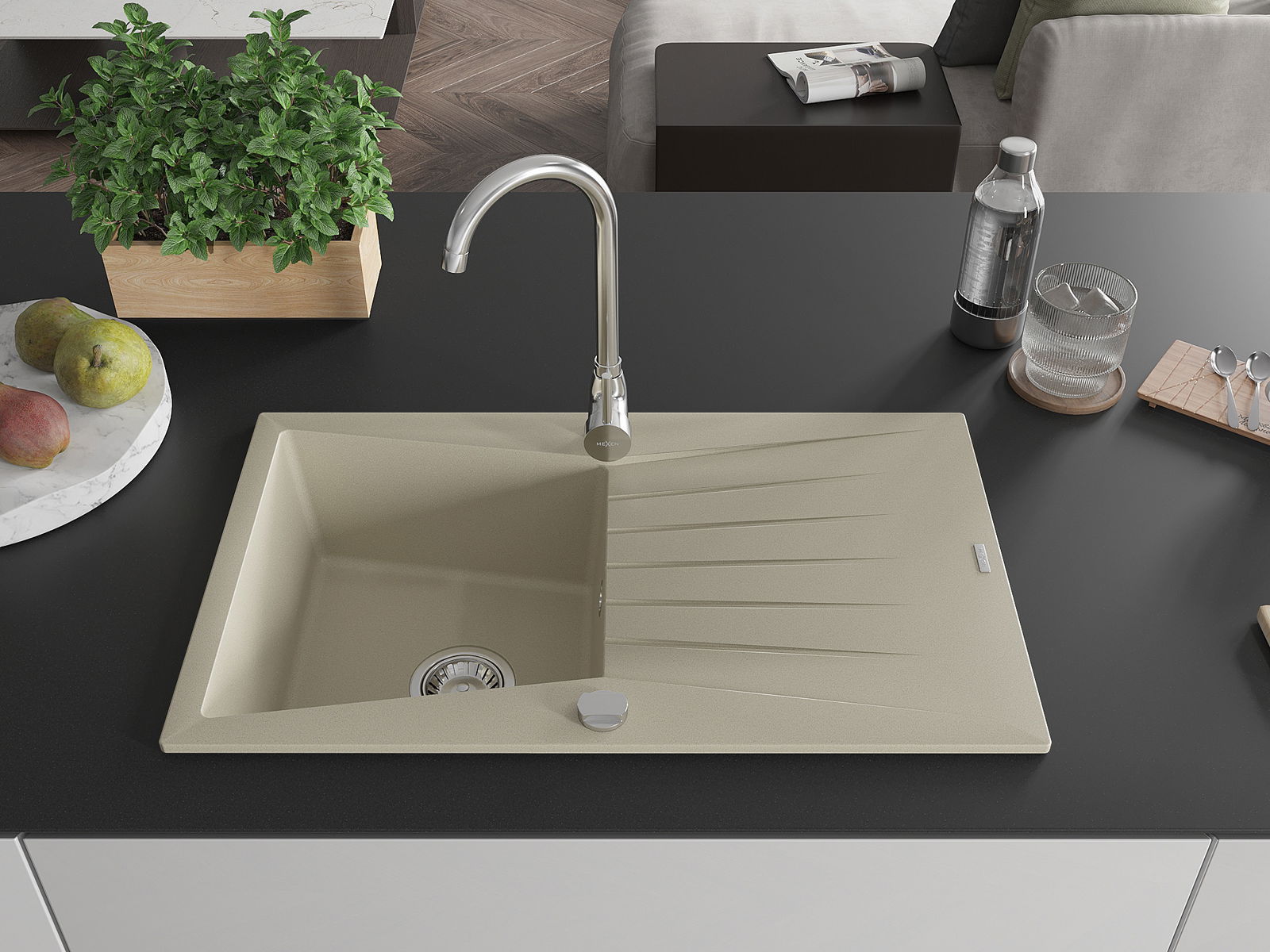 Mexen Cesar кухненска мивка от гранит с 1 отделение и отцедник и кухненски смесител Telma, бежов - 6514-69-670200-00