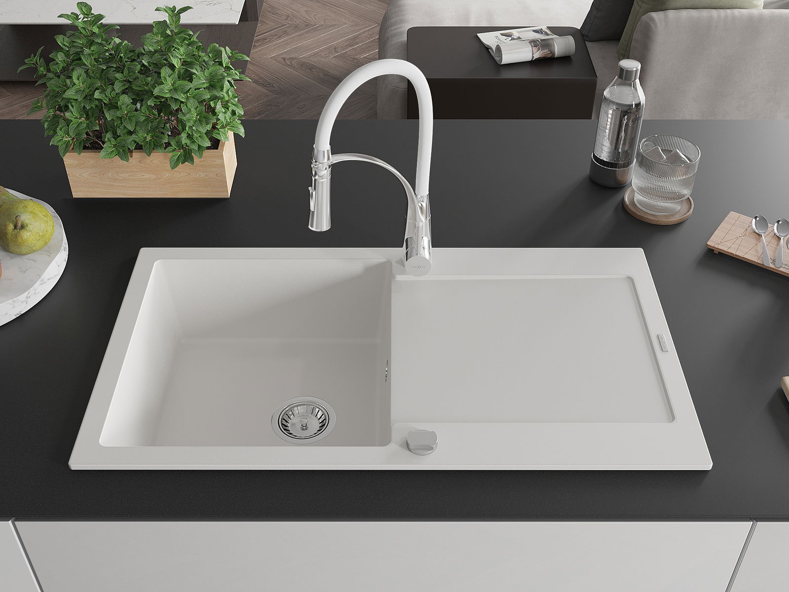 Повърхността на мивката е устойчива на петна и обезцветяване, благодарение на които е лесно да се почиства и запазва цвета си за дълго време. Естетически и практически допълващи всяка кухня.