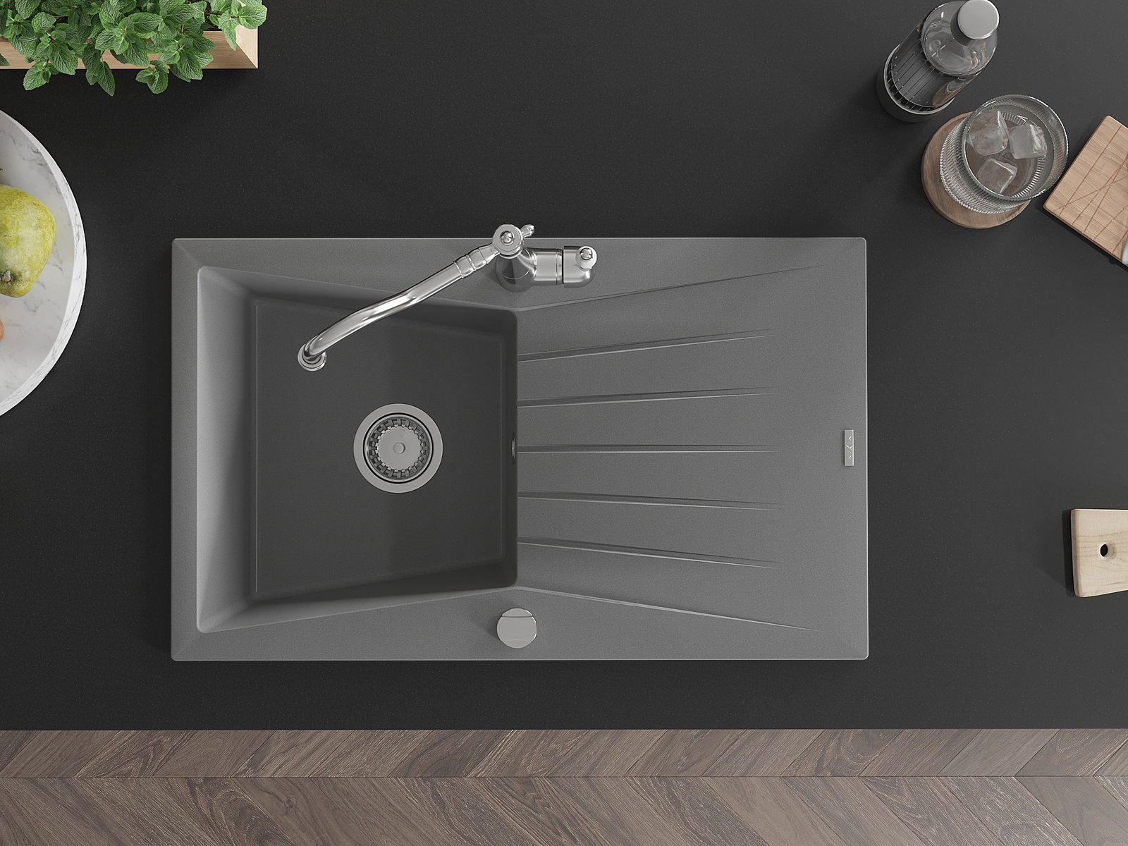 Мивката е направена от висококачествен гранит. Това е елегантно и най -вече практично допълнение към всяка кухня, независимо от нейния стил. Висококачествената и гранитна издръжливост осигуряват много години употреба.