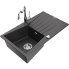 Mexen Cesar мивка гранитна 1-каморна с отцедник и кухненски смесител Carla, сива - 6514-71-670700-00