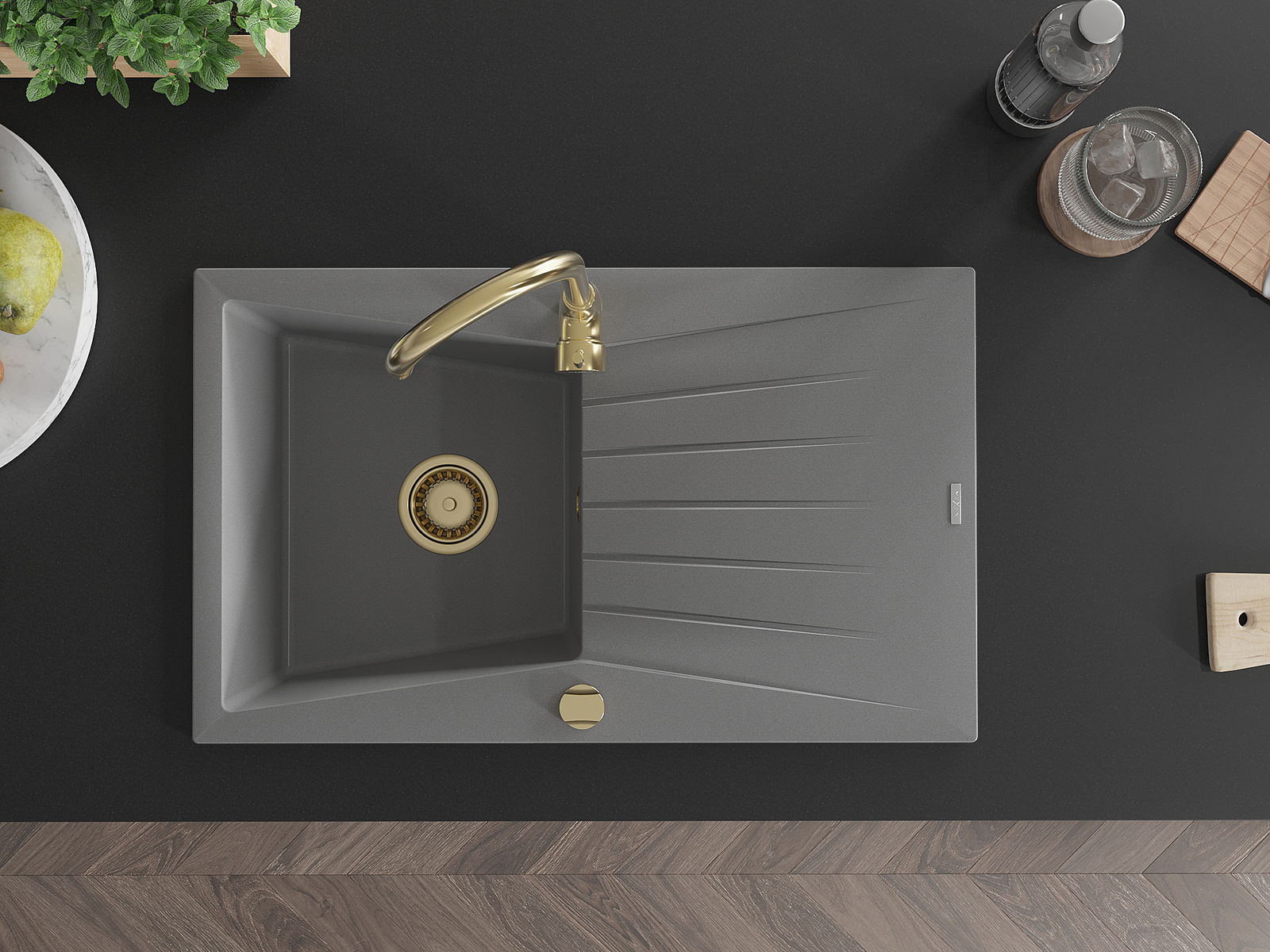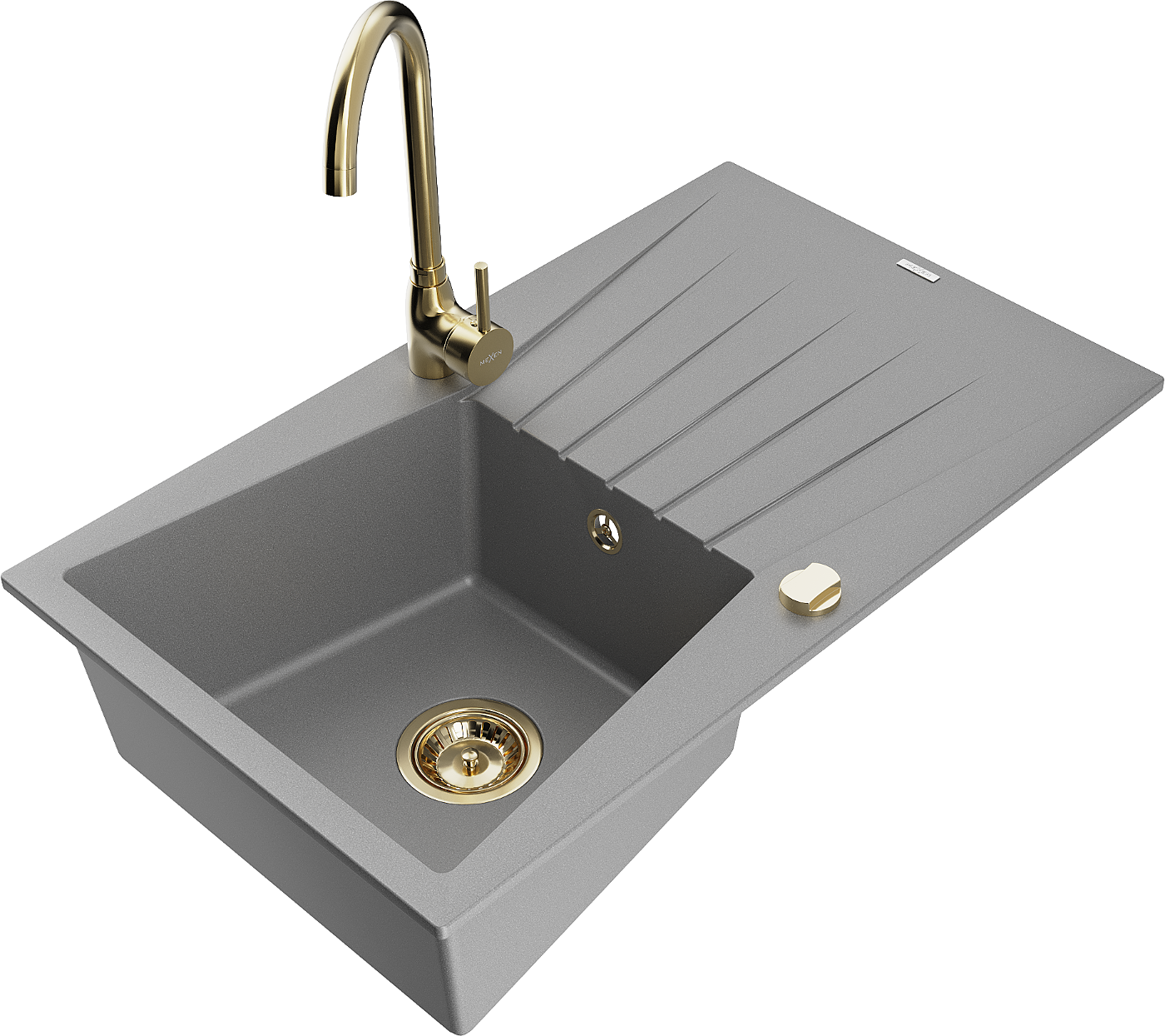 Mexen Cesar гранитна мивка с 1 отделение с отцеждане и кухненски смесител Telma, сив - 6514-71-670200-50