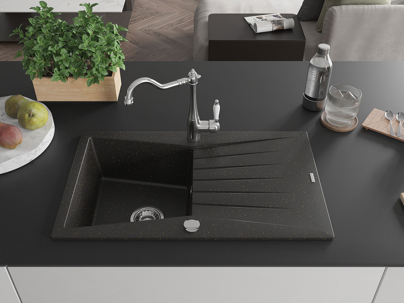 Мивката е направена от висококачествен гранит. Това е елегантно и най -вече практично допълнение към всяка кухня, независимо от нейния стил. Висококачествената и гранитна издръжливост осигуряват много години употреба.