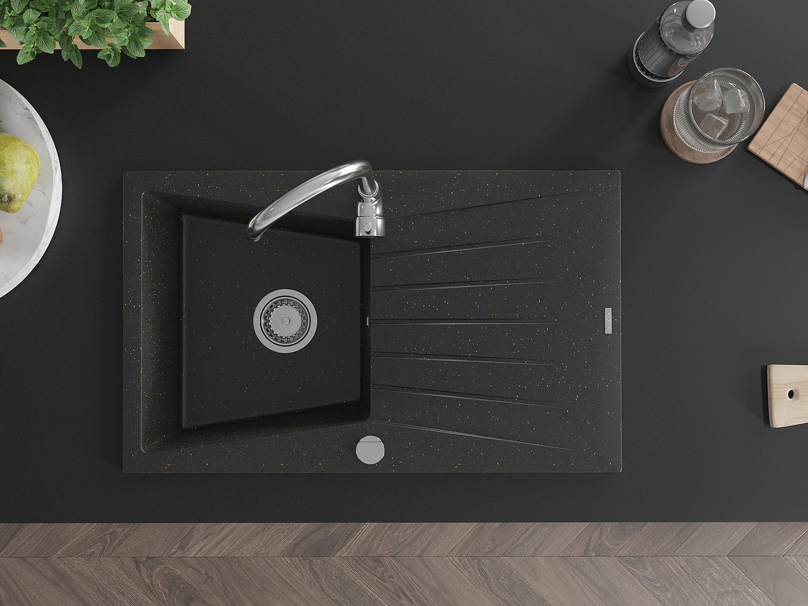 Мивката е направена от висококачествен гранит. Това е елегантно и най -вече практично допълнение към всяка кухня, независимо от нейния стил. Висококачествената и гранитна издръжливост осигуряват много години употреба.