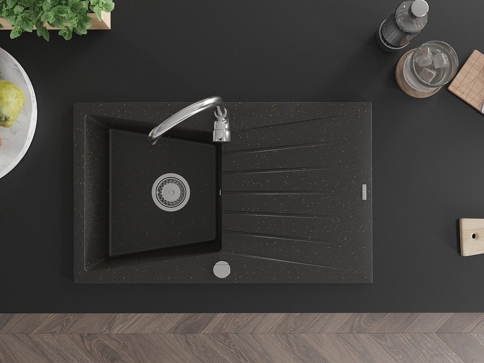 Mexen Cesar гранитна мивка с 1 кош и отцедник и кухненски смесител Telma,
