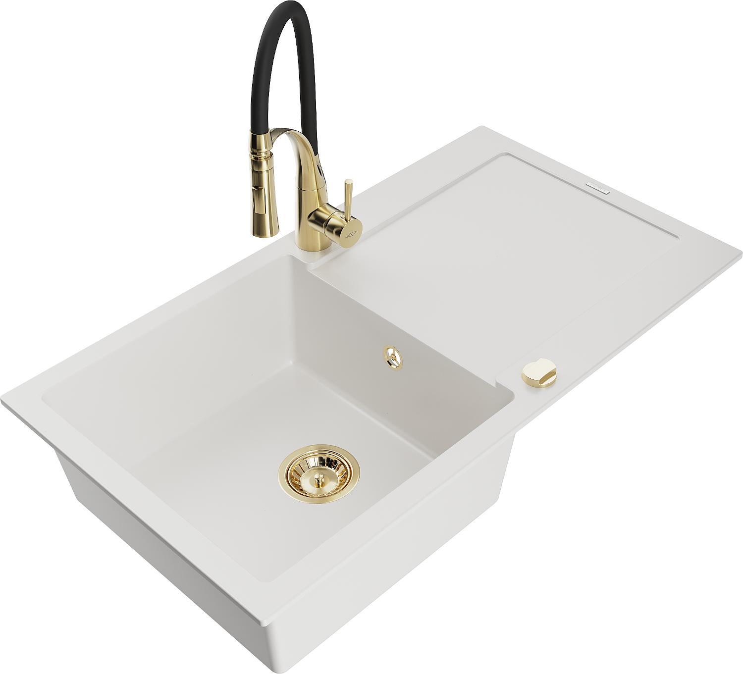 Mexen Leo гранитна кухненска мивка с 1 отделение, сушилник и кухненски смесител Aster, бял - 6501-20-73450-57-G
