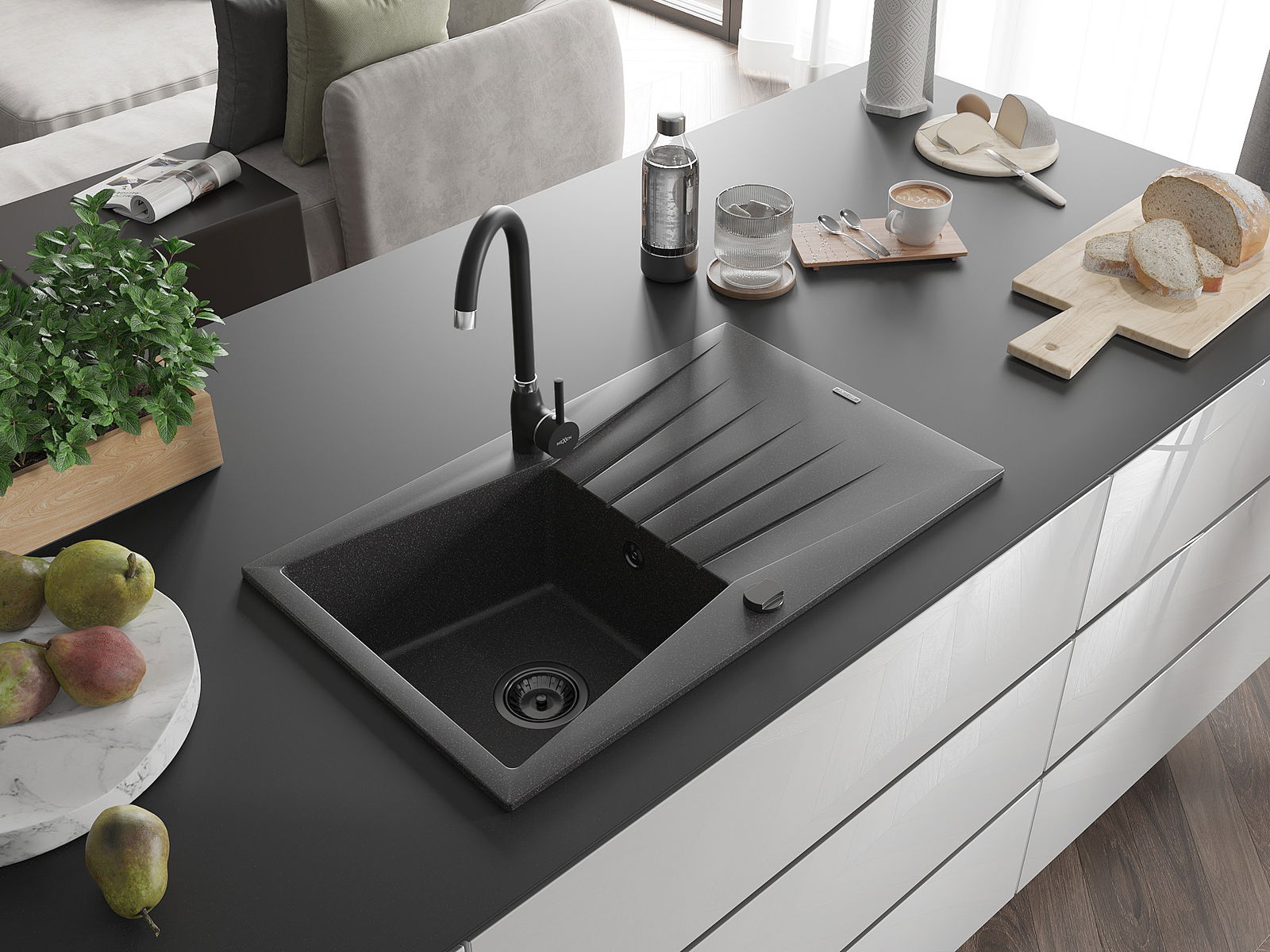 Мивката е направена от висококачествен гранит. Това е елегантно и най -вече практично допълнение към всяка кухня, независимо от нейния стил. Висококачествената и гранитна издръжливост осигуряват много години употреба.