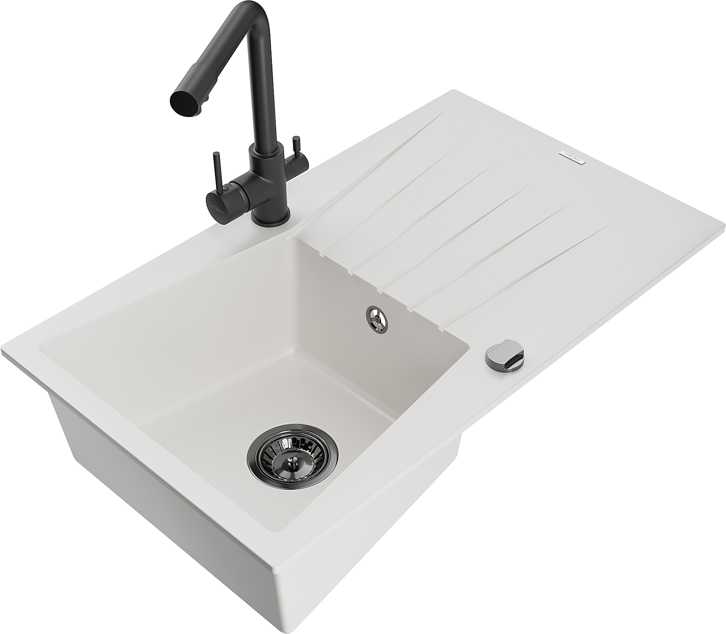 Mexen Cesar мивка гранитна 1-камерна с отцедник и кухненски смесител Duero, бял - 6514-20-671600-70