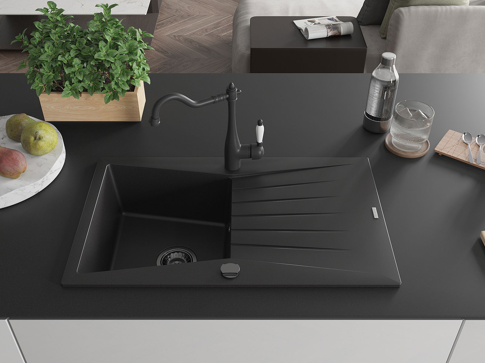 Мивката е направена от висококачествен гранит. Това е елегантно и най -вече практично допълнение към всяка кухня, независимо от нейния стил. Висококачествената и гранитна издръжливост осигуряват много години употреба.