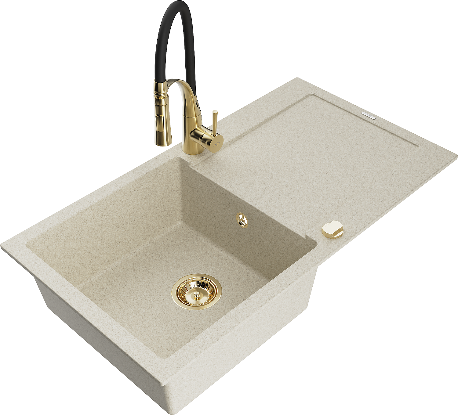Мекзен Лео мивка за вграждане от гранит с 1 отделение и отцедник и кухненски смесител Астър, бежов - 6501-69-73450-57-G