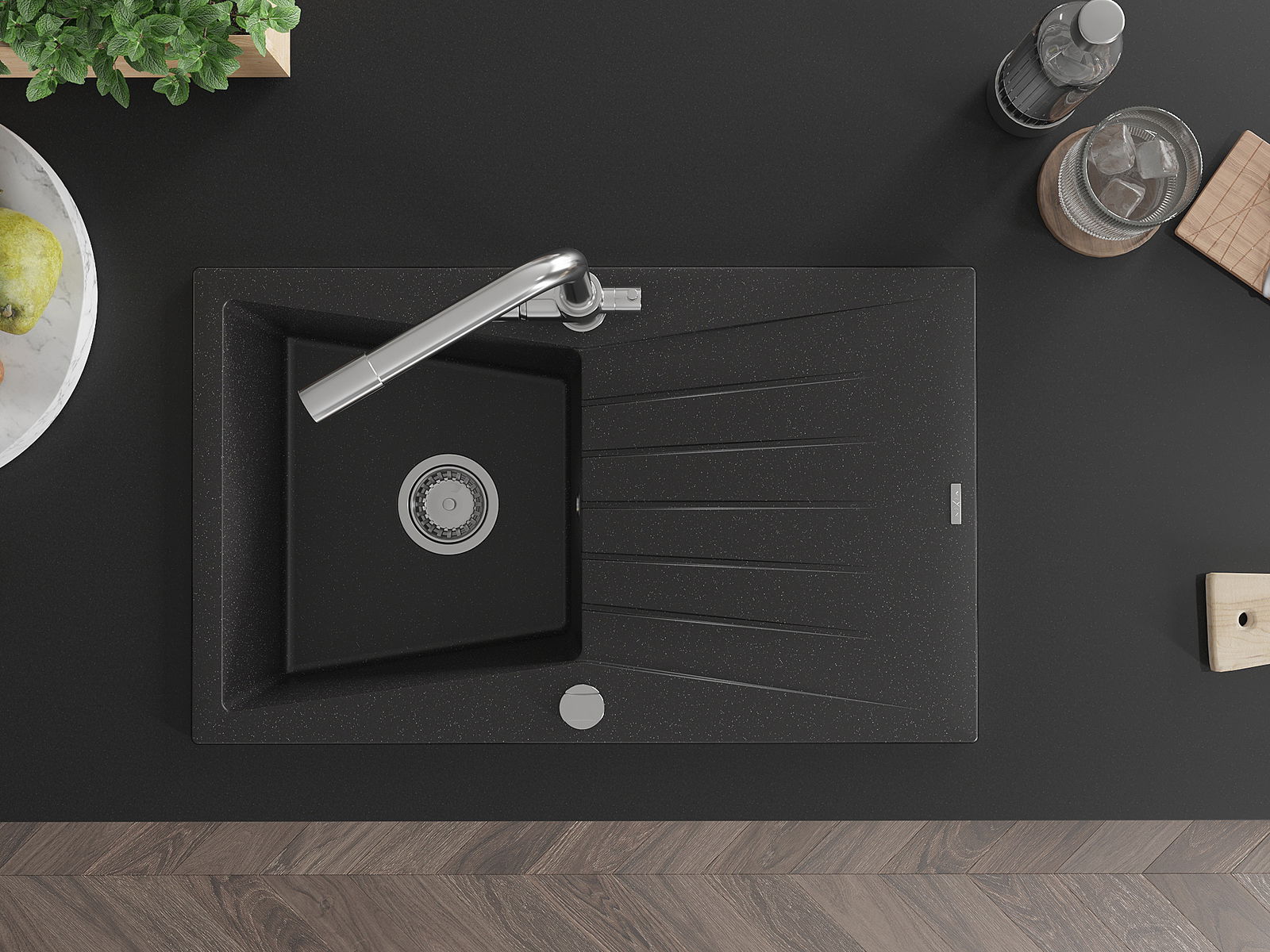 Мивката е направена от висококачествен гранит. Това е елегантно и най -вече практично допълнение към всяка кухня, независимо от нейния стил. Висококачествената и гранитна издръжливост осигуряват много години употреба.
