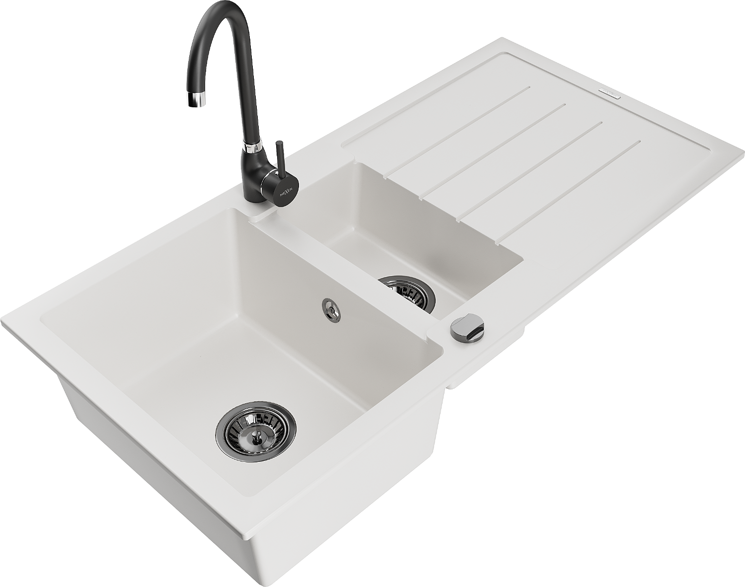 Mexen Andres гранитна мивка 1,5-коморна с отцедник и кухненски смесител Telma, бяла - 6515-20-670200-70