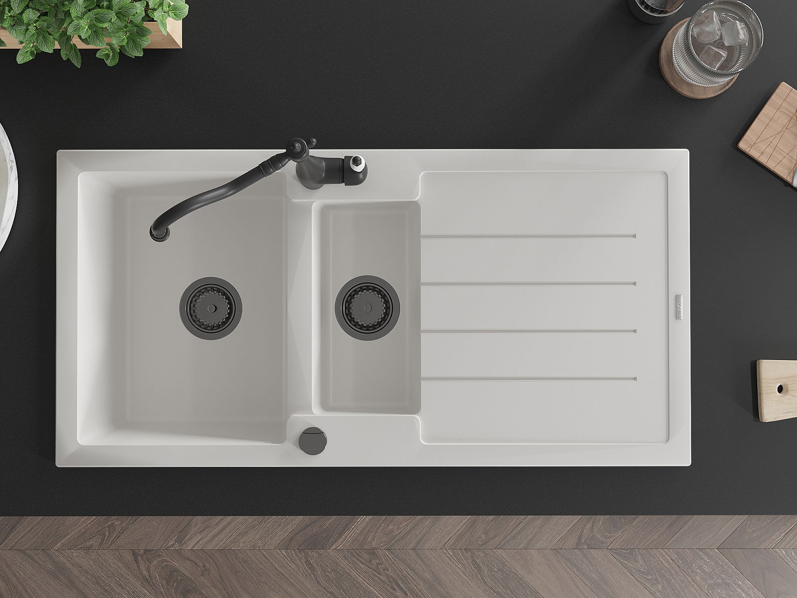 Повърхността на мивката е устойчива на петна и обезцветяване, благодарение на които е лесно да се почиства и запазва цвета си за дълго време. Естетически и практически допълващи всяка кухня.