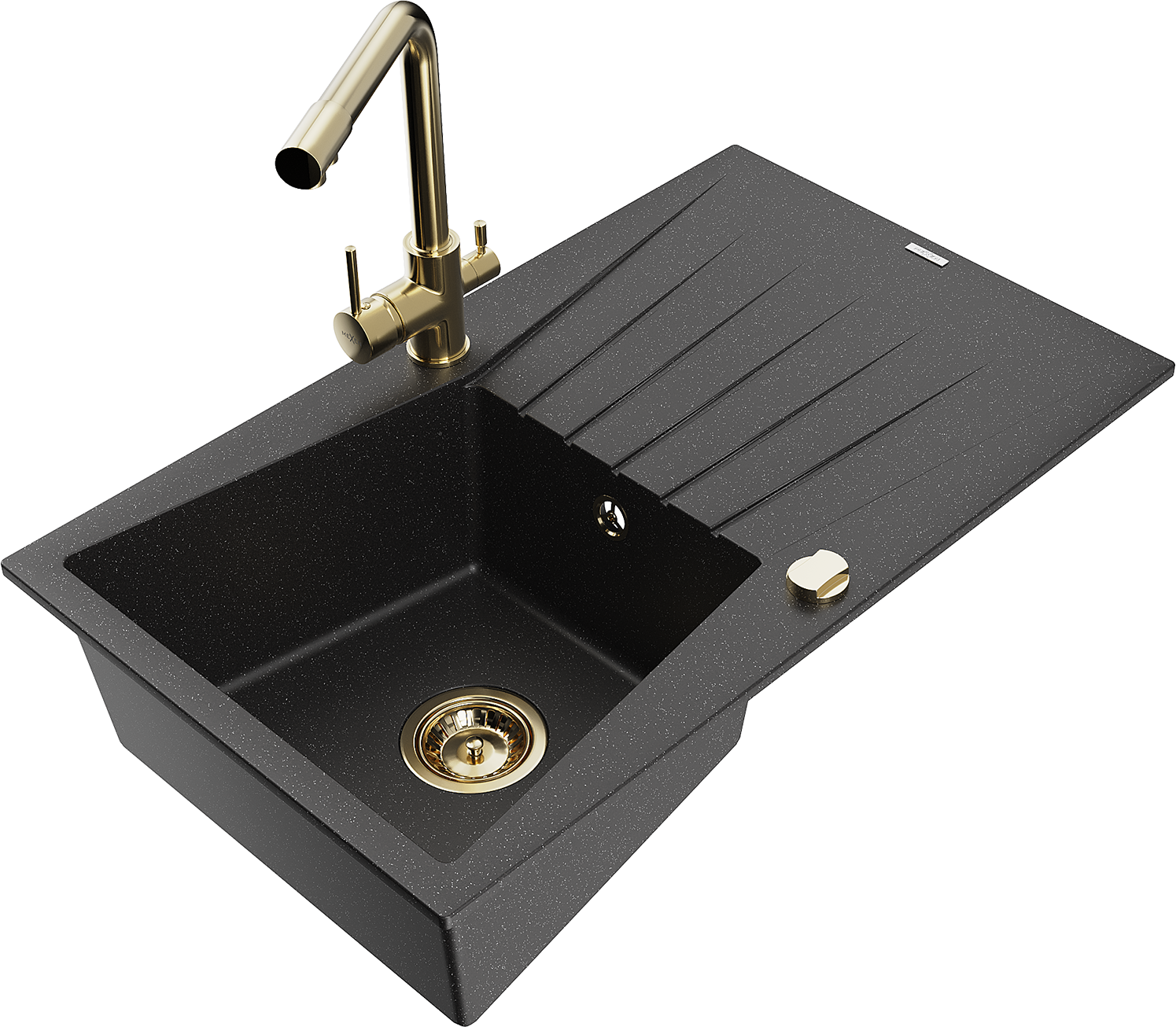 Mexen Cesar гранитна мивка с 1 отделение с отцедник и кухненски смесител