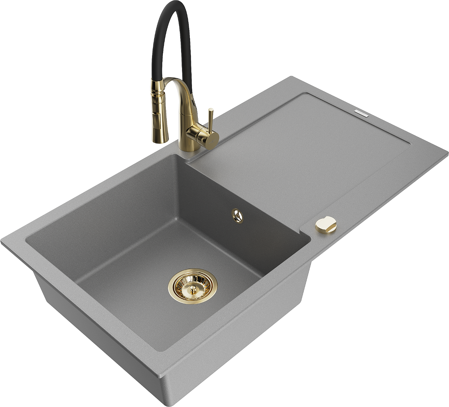 Mexen Leo мивка от гранит 1-камерна с отцедник и кухненски смесител Aster, сив - 6501-71-73450-57-G