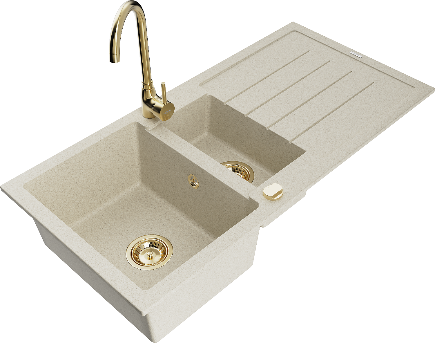 Mexen Andres гранитна мивка 1,5-камерна с отцедник и кухненски смесител Telma, бежов - 6515-69-670200-50