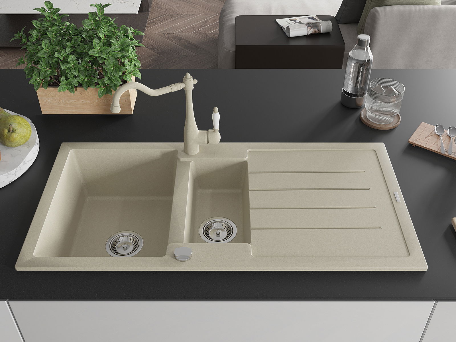 Повърхността на мивката е устойчива на петна и обезцветяване, благодарение на които е лесно да се почиства и запазва цвета си за дълго време. Естетически и практически допълващи всяка кухня.