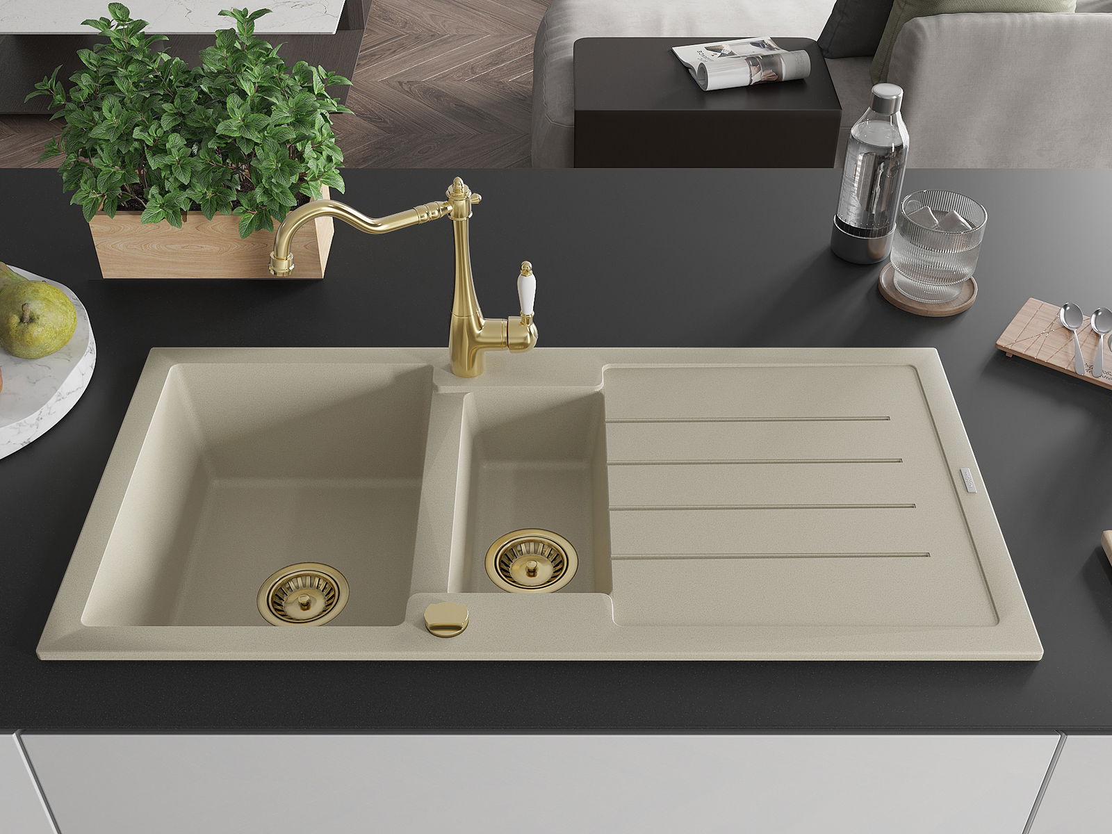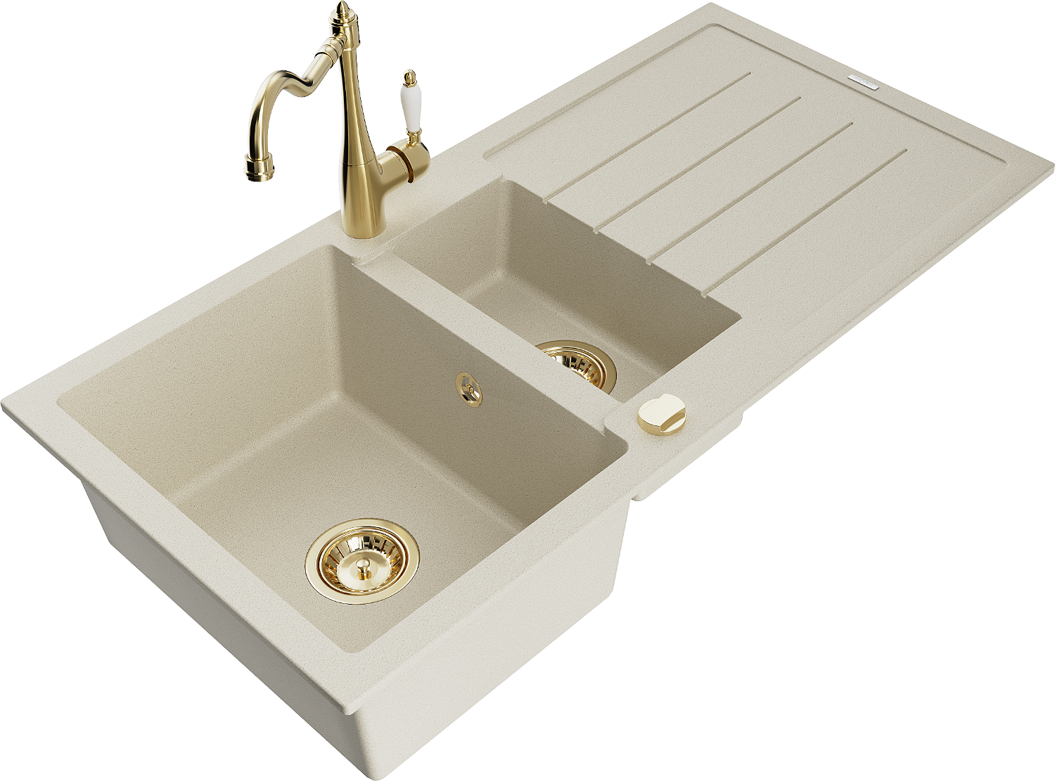 Mexen Andres гранитна мивка с 1,5 камери с отцедник и кухненски смесител Carla, бежов - 6515-69-670700-50