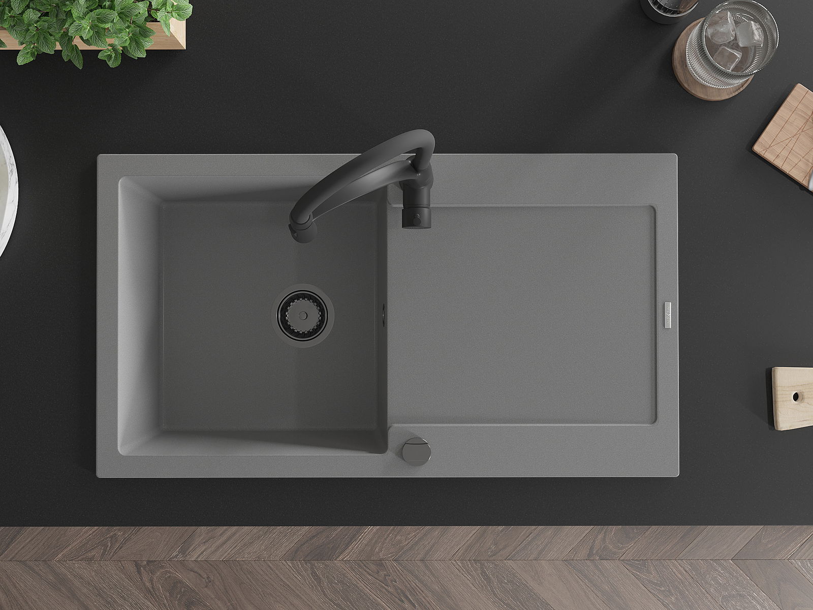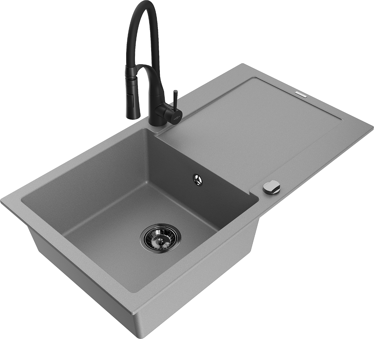 Mexen Leo кухненска мивка от гранит с 1 корито и отцедник и кухненски смесител Aster, сив - 6501-71-73450-70-B