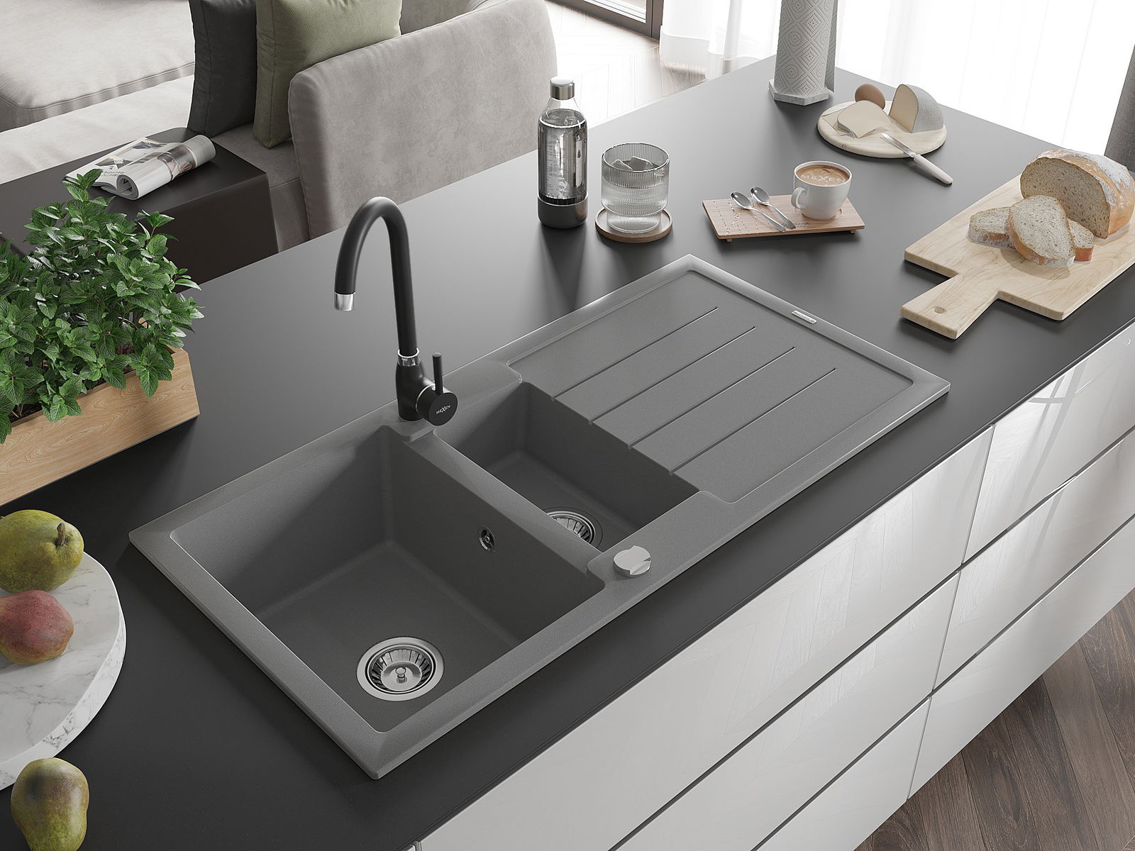 Мивката е направена от висококачествен гранит. Това е елегантно и най -вече практично допълнение към всяка кухня, независимо от нейния стил. Висококачествената и гранитна издръжливост осигуряват много години употреба.