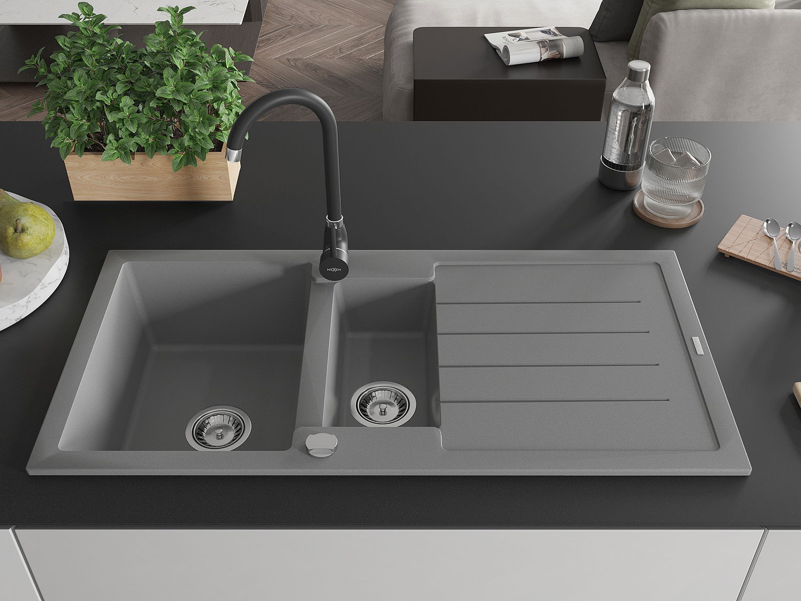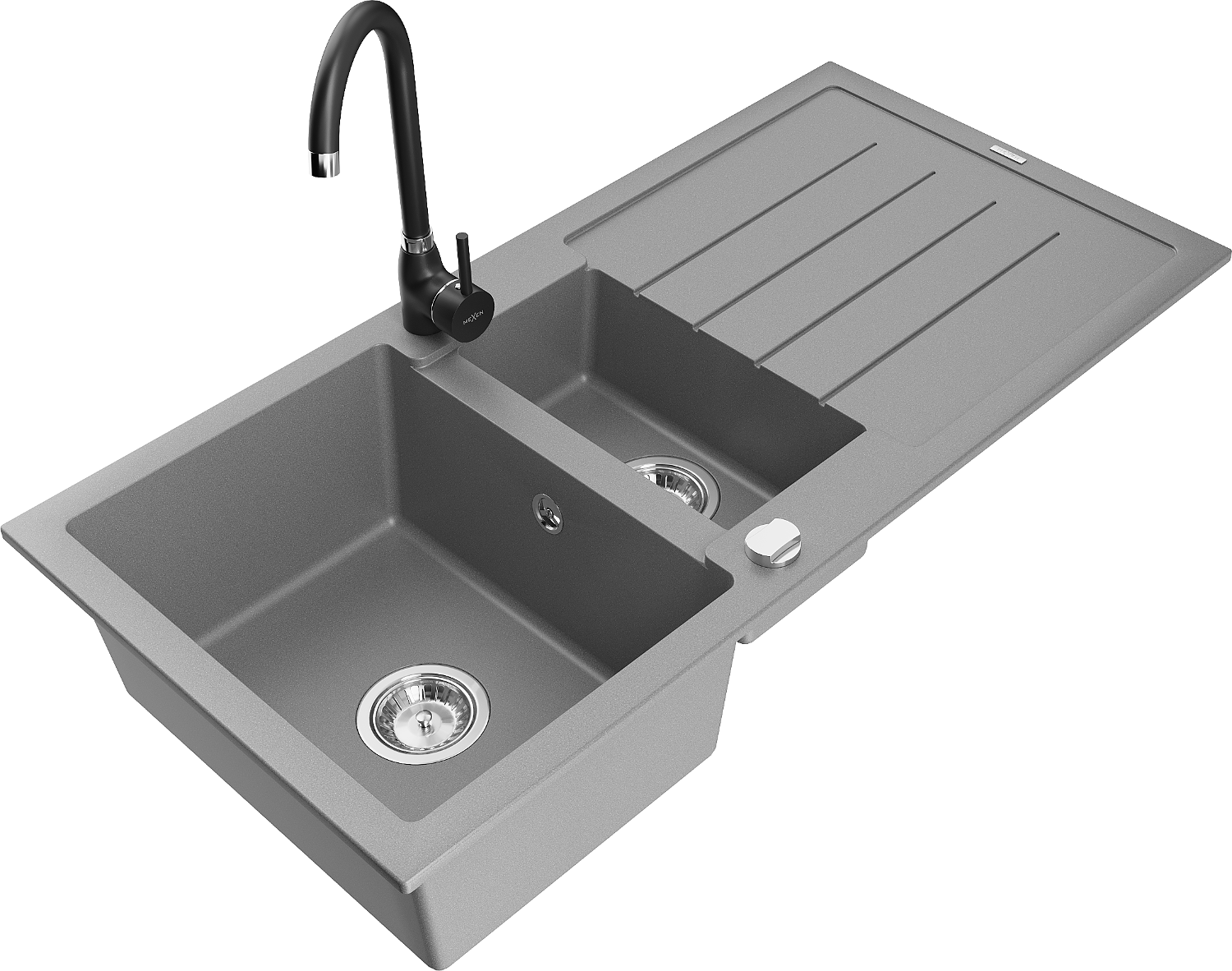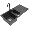 Mexen Andres гранитна мивка с 1,5 камери, сушилник и кухненски смесител Telma, сив - 6515-71-670200-70