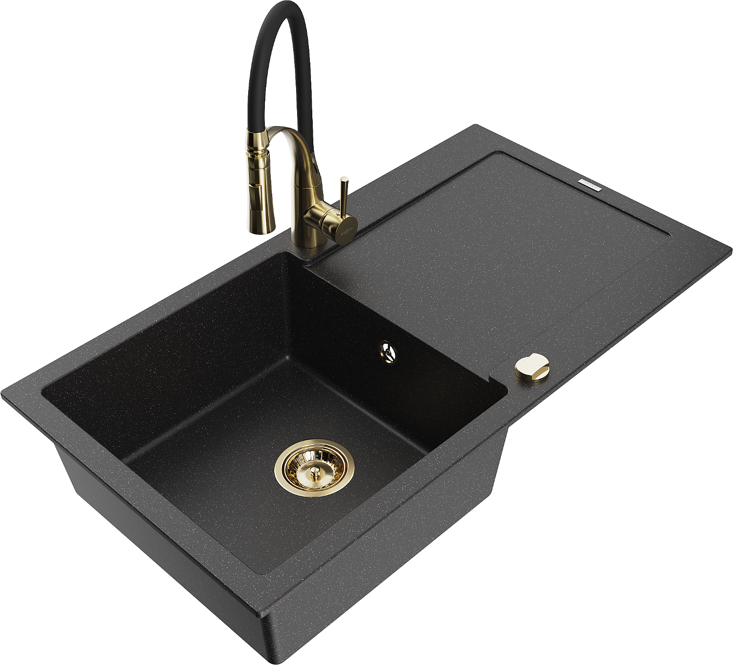 Mexen Leo гранитна мивка с 1 отделение, отцедник и кухненски смесител Aster, черен/сребрист металик - 6501-73-73450-57-G