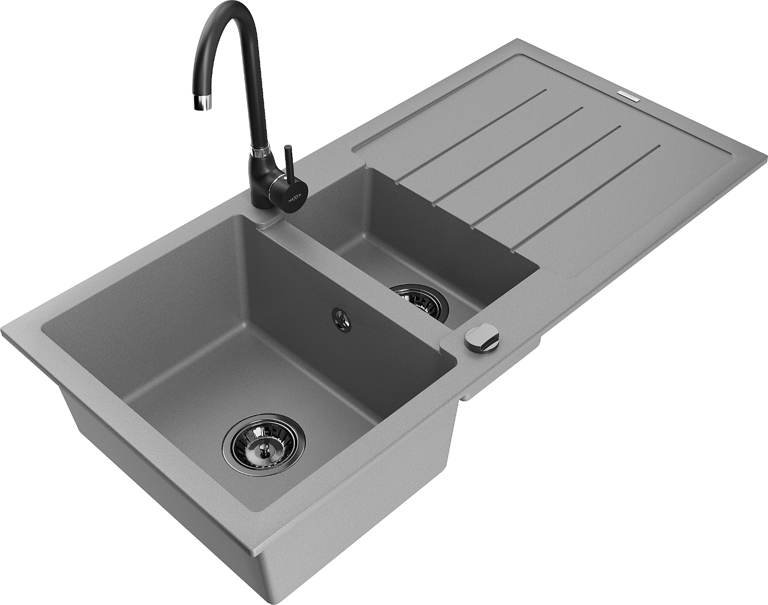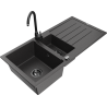 Mexen Andres гранитна мивка 1,5-коморна със сушилня и кухненски смесител Telma, сив - 6515-71-670200-70-B