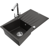 Mexen Cesar мивка от гранит 1-камерна с отцедник и кухненски смесител Duero, черен на пръски - 6514-76-671600-00