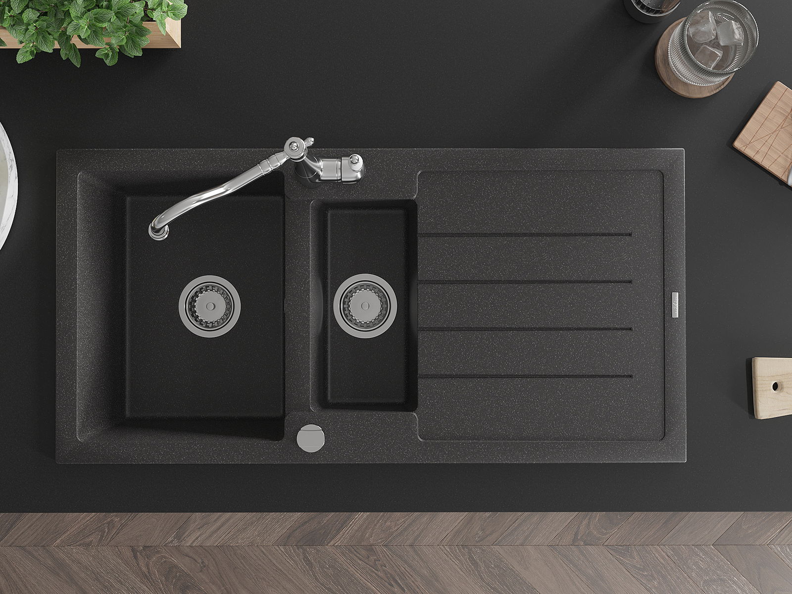 Мивката е направена от висококачествен гранит. Това е елегантно и най -вече практично допълнение към всяка кухня, независимо от нейния стил. Висококачествената и гранитна издръжливост осигуряват много години употреба.