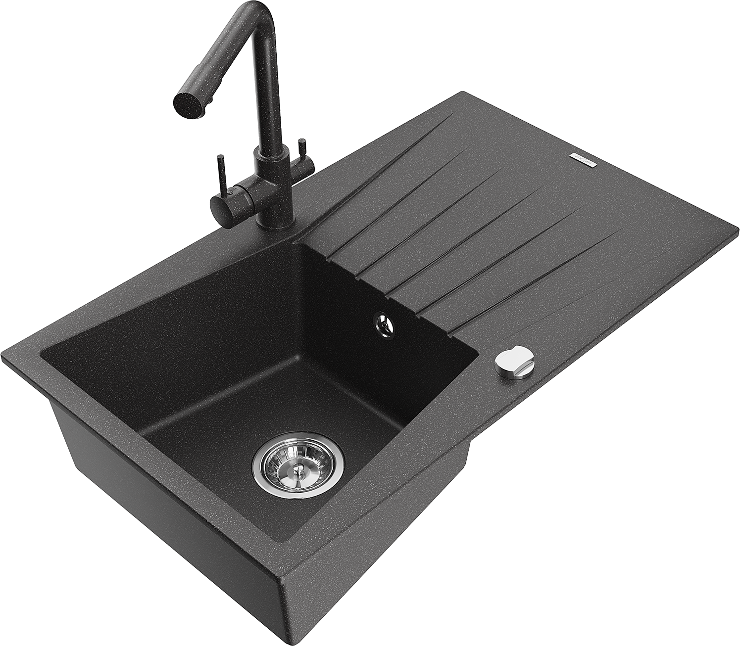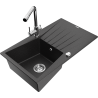 Mexen Cesar гранитна мивка с 1 корито с отцедник и кухненски смесител Duero, черен на пръски - 6514-76-671600-76