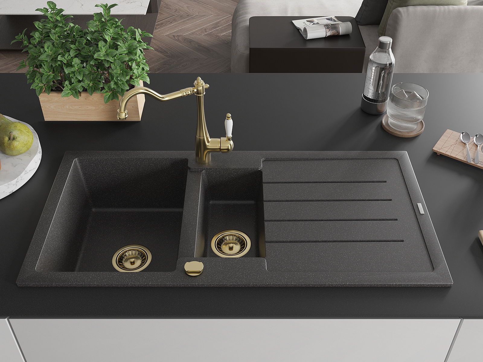 Мивката е направена от висококачествен гранит. Това е елегантно и най -вече практично допълнение към всяка кухня, независимо от нейния стил. Висококачествената и гранитна издръжливост осигуряват много години употреба.