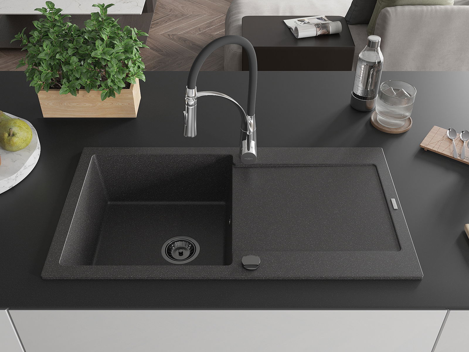 Мивката е направена от висококачествен гранит. Това е елегантно и най -вече практично допълнение към всяка кухня, независимо от нейния стил. Висококачествената и гранитна издръжливост осигуряват много години употреба.