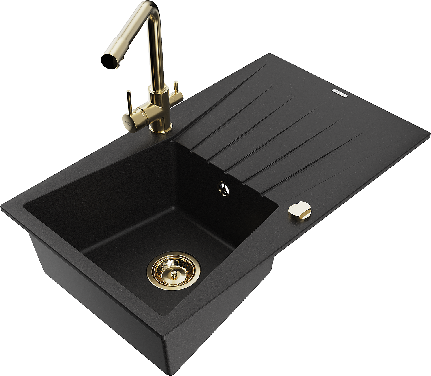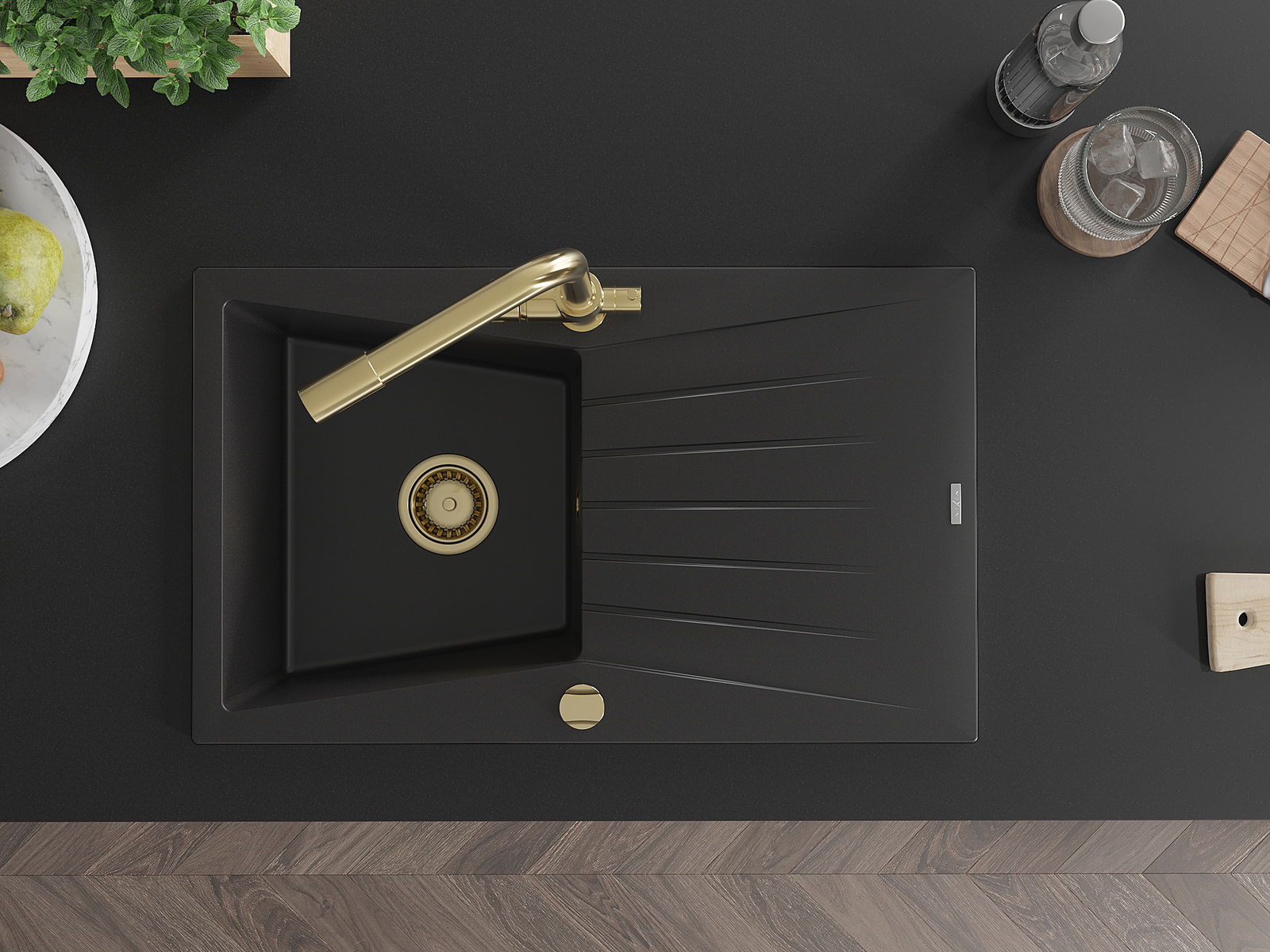 Mexen Cesar гранитна мивка с 1 отделение с отцедник и кухненска батерия Duero, черна - 6514-77-671600-50