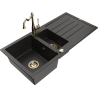 Mexen Andres гранитна мивка 1,5-камерна с отцедник и кухненски смесител Carla, черен - 6515-77-670700-50