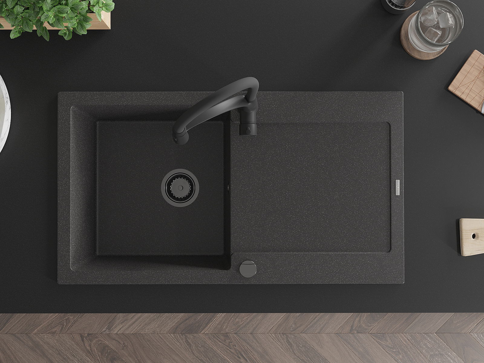 Мивката е направена от висококачествен гранит. Това е елегантно и най -вече практично допълнение към всяка кухня, независимо от нейния стил. Висококачествената и гранитна издръжливост осигуряват много години употреба.