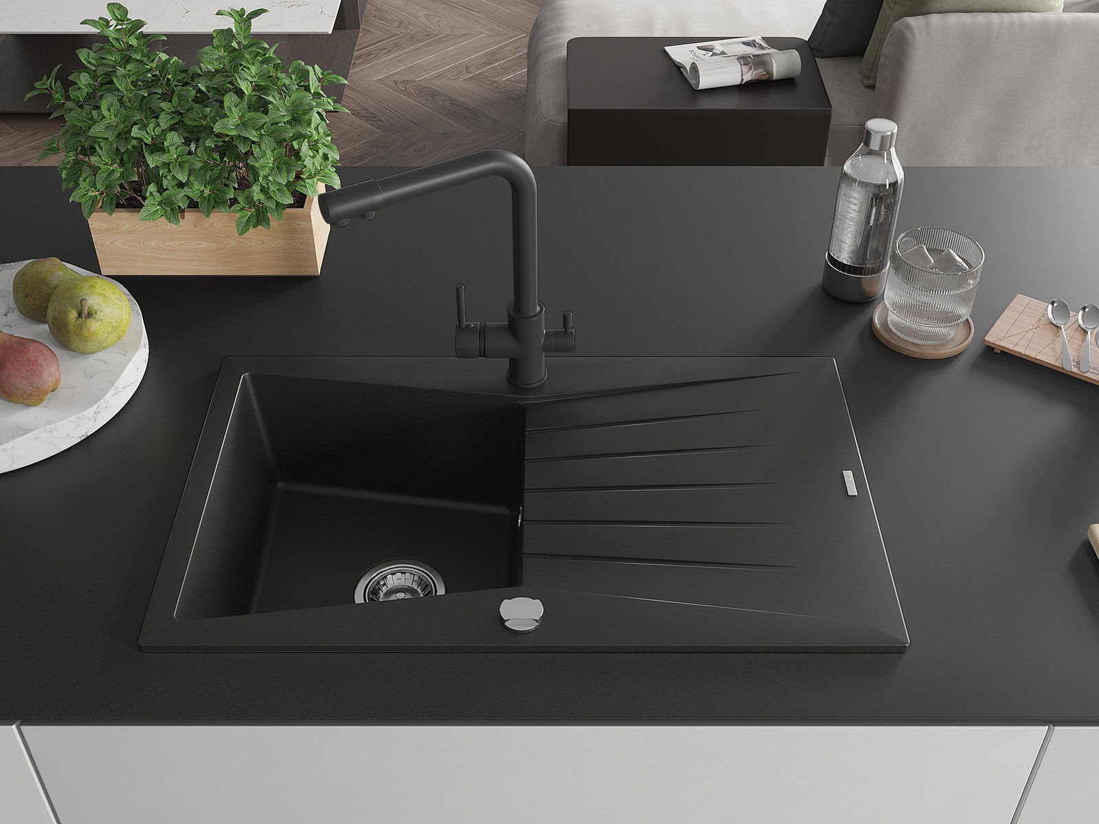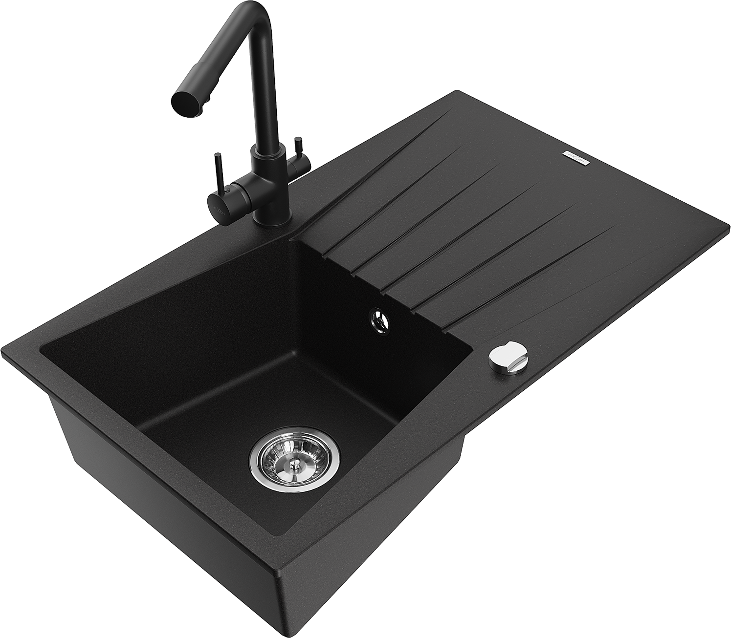 Mexen Cesar гранитна мивка с едно корито и сушилник и кухненски смесител