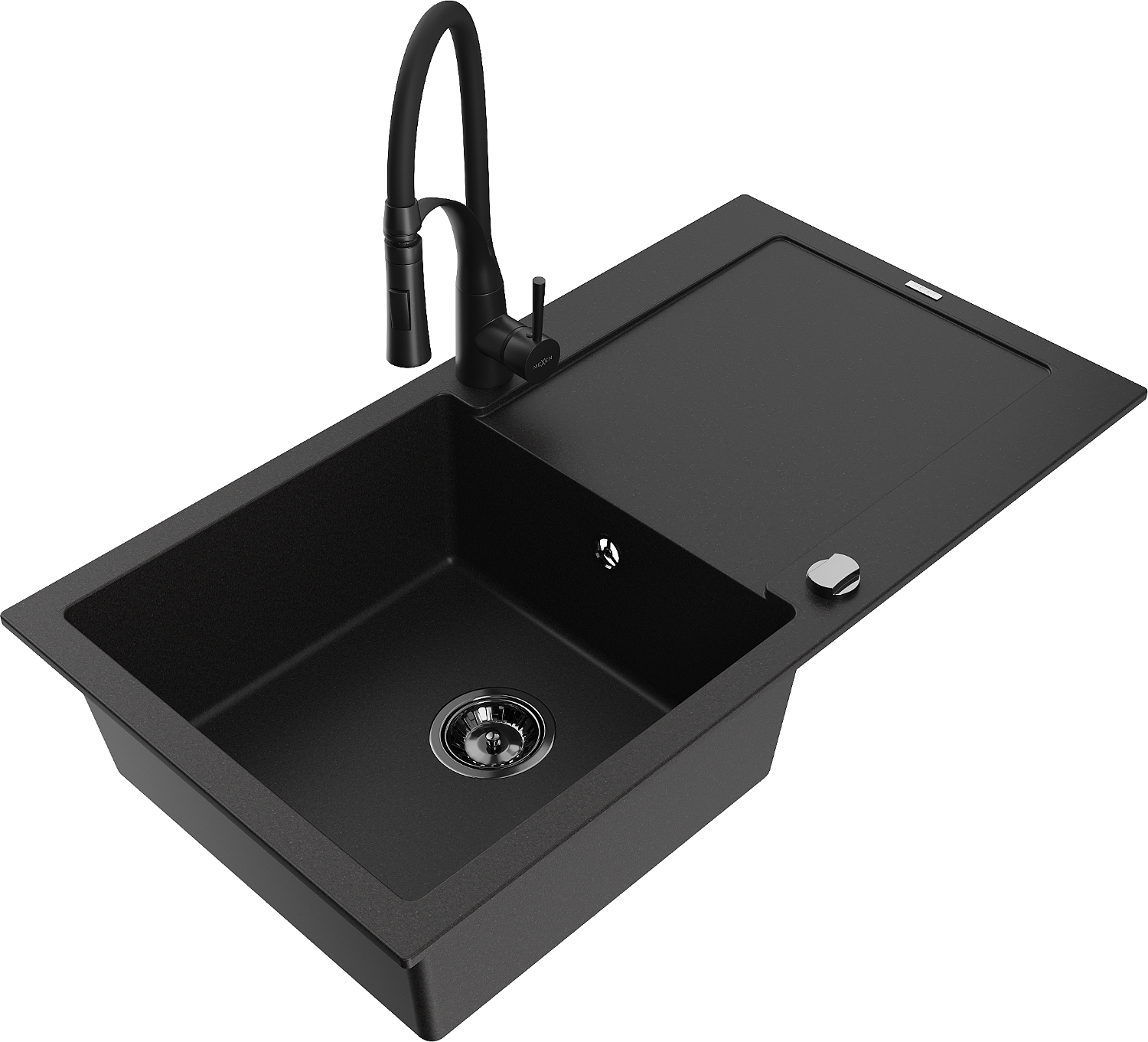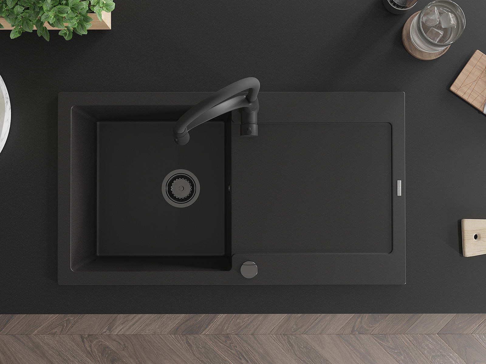 Mexen Leo гранитна мивка с 1 корито с отцедник и кухненски смесител Aster, черен - 6501-77-73450-70-B