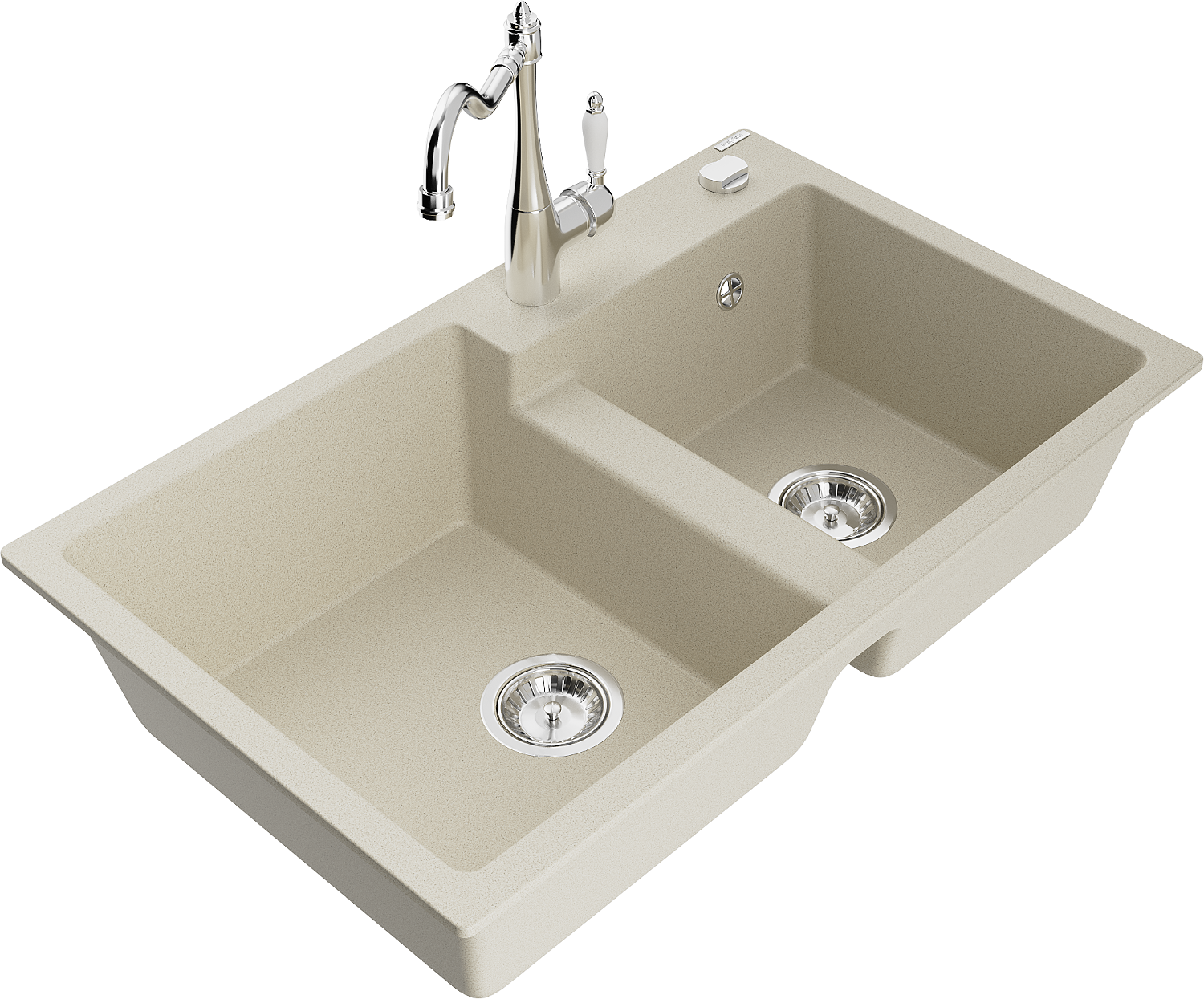 Mexen Tomas гранитна кухненска мивка с 2 корита с кухненски смесител Carla, бежова - 6516-69-670700-00
