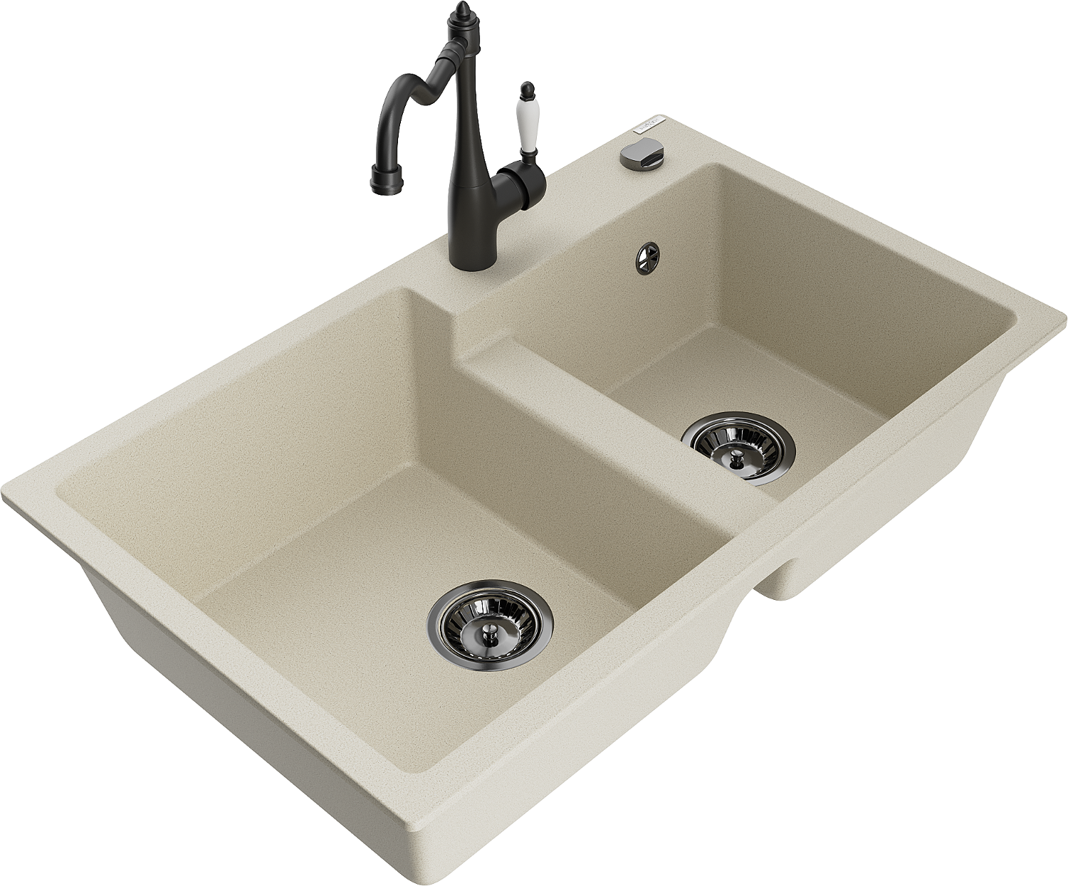 Mexen Tomas двоен кухненски гранитен мивка с кухненски смесител Carla, бежов - 6516-69-670700-70