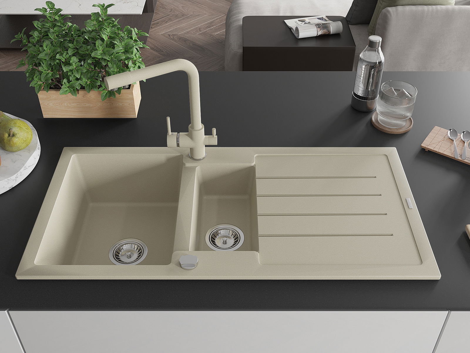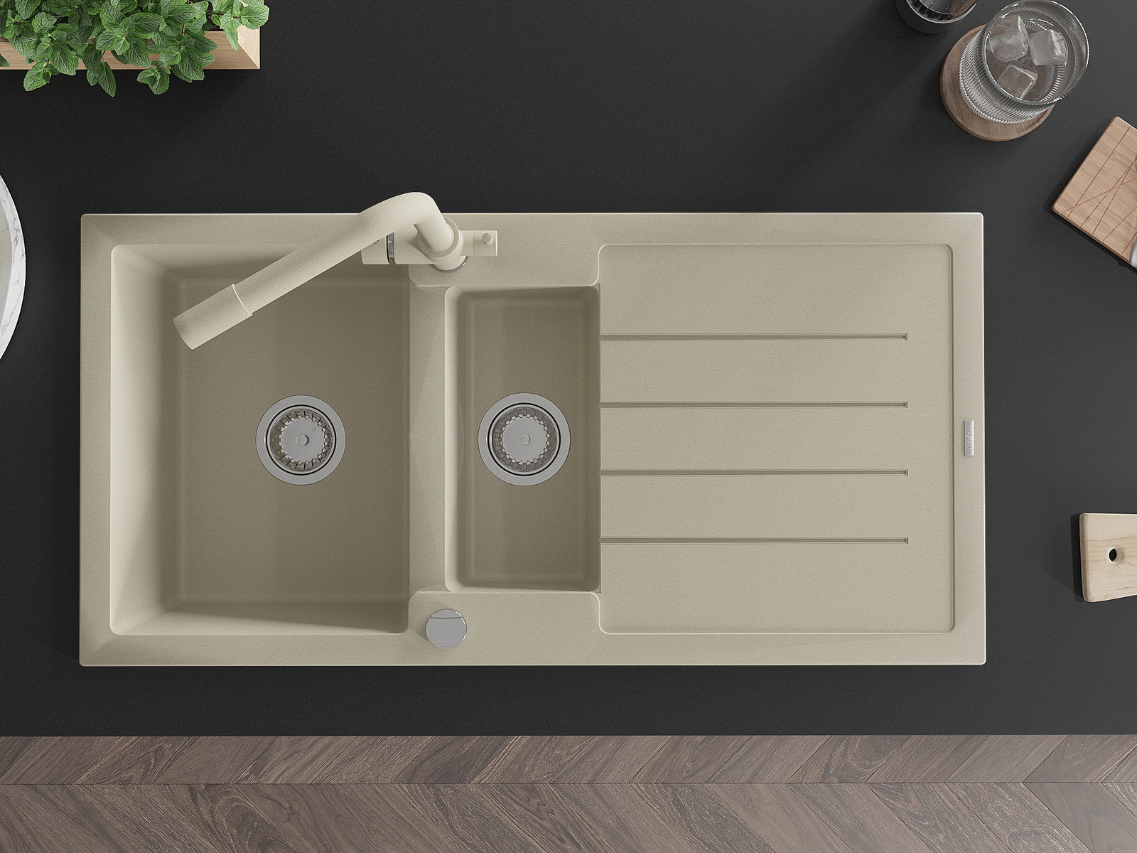 Повърхността на мивката е устойчива на петна и обезцветяване, благодарение на които е лесно да се почиства и запазва цвета си за дълго време. Естетически и практически допълващи всяка кухня.