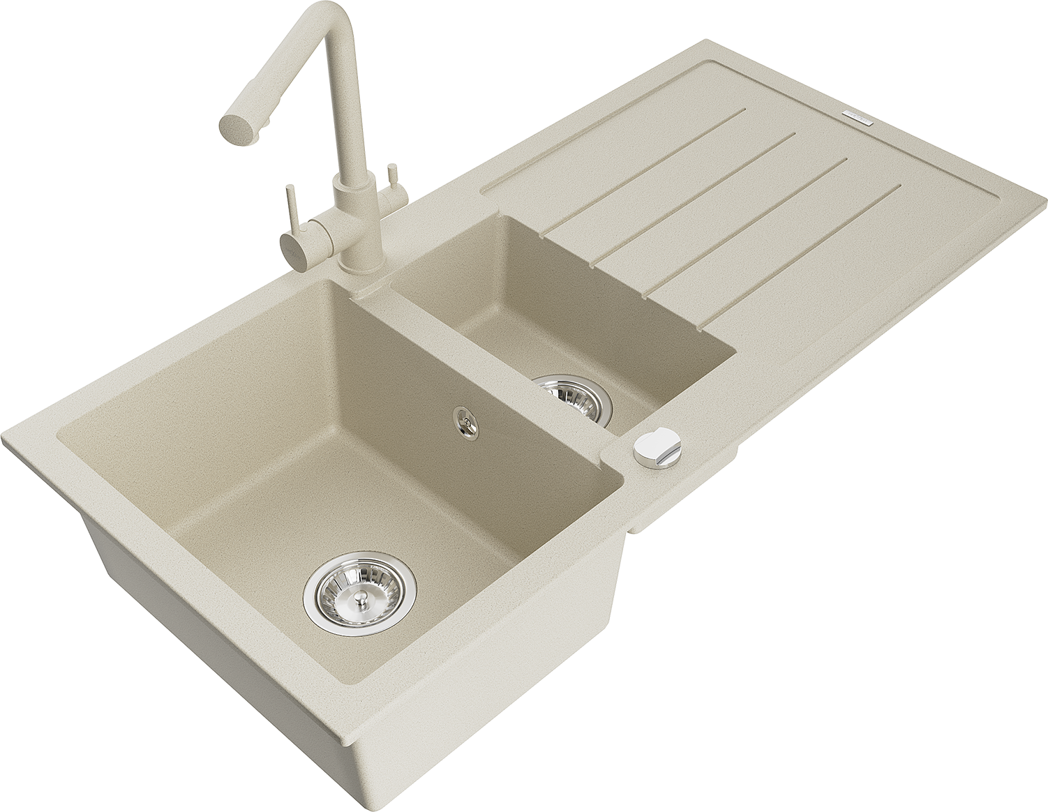 Mexen Andres гранитна мивка с 1,5 камери, с отцедник и кухненски смесител Duero, бежов - 6515-69-671600-69