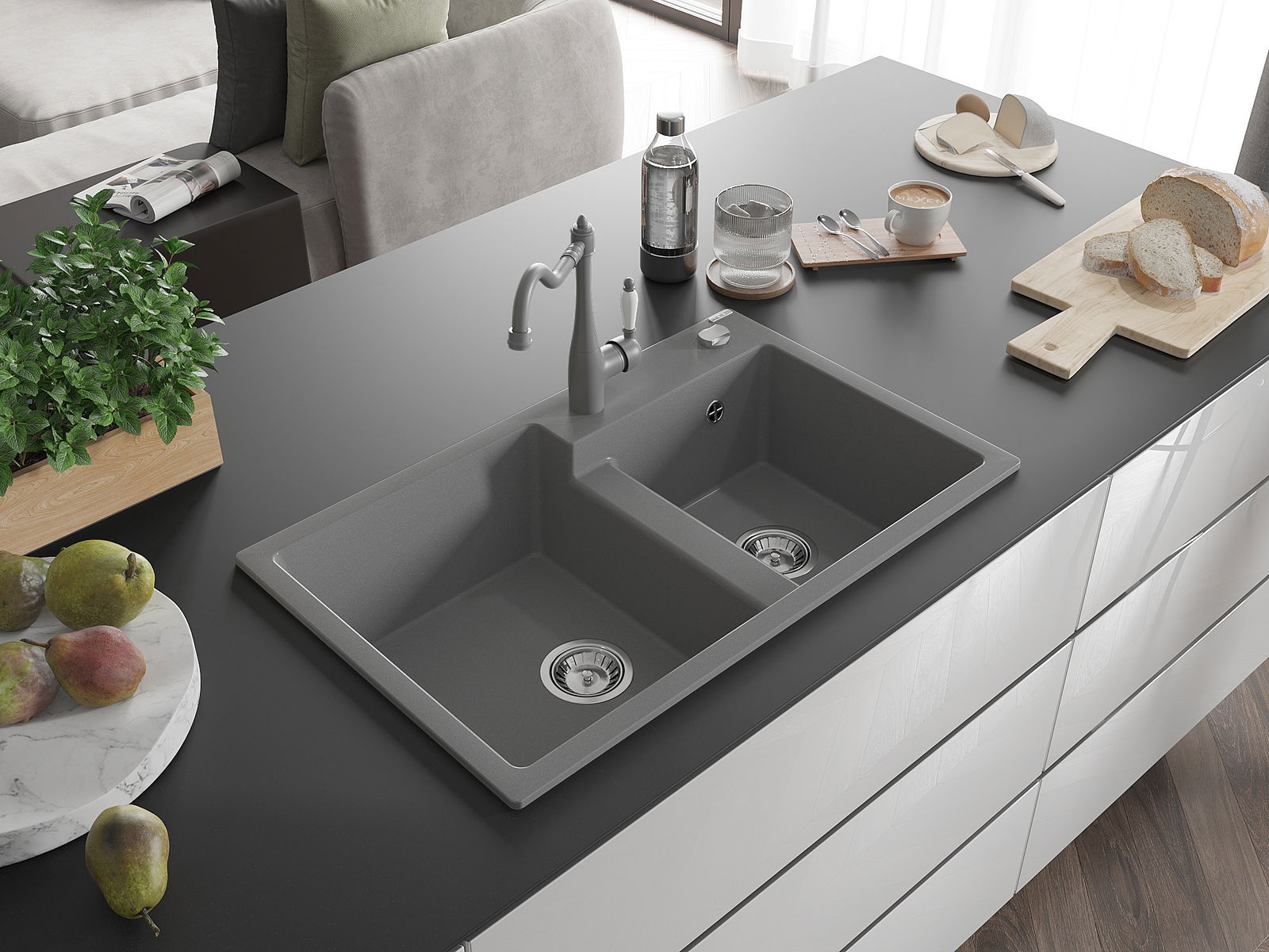 Мивката е направена от висококачествен гранит. Това е елегантно и най -вече практично допълнение към всяка кухня, независимо от нейния стил. Висококачествената и гранитна издръжливост осигуряват много години употреба.