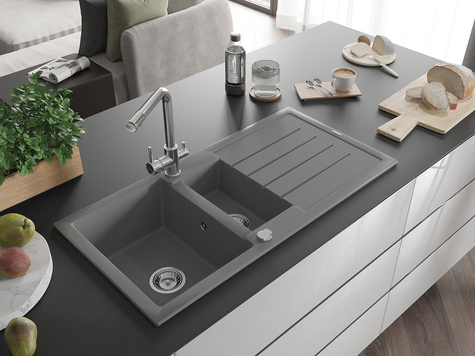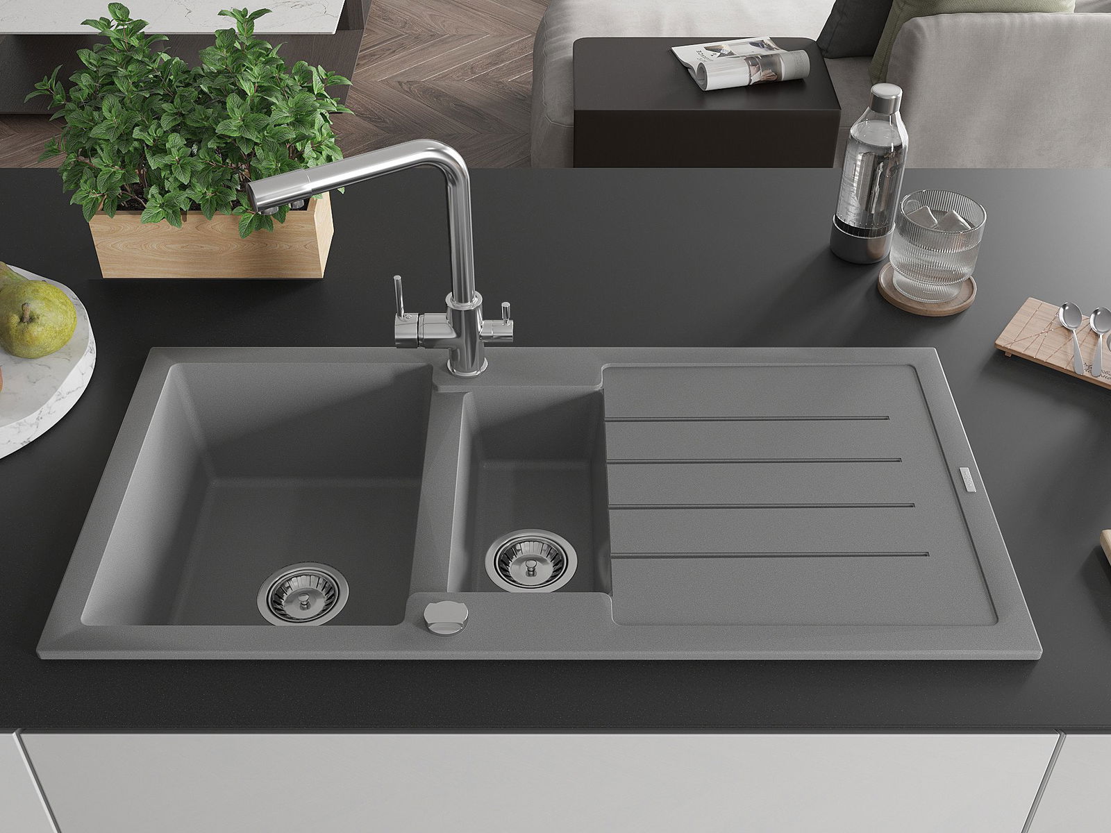 Изборът на мивка със сушилник е практично решение, което позволява да оставите измити съдове или зеленчуци и плодове. Сушилникът улеснява ежедневното готвене и помага за поддържане на ред в кухнята.